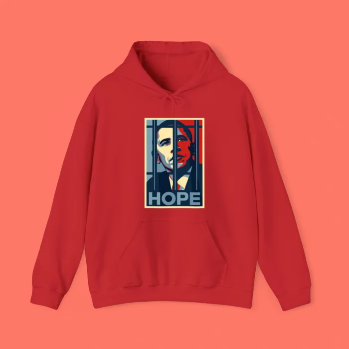 This shirt is more than just a piece of clothing; it’s a conversation starter. Featuring a daring twist on Shepard Fairey’s iconic “HOPE” poster, this design flips the narrative from inspiration to irony. Instead of uplifting messages, you’ll find President Obama’s face peering through prison bars, creating a striking visual that captures the current socio-political climate.