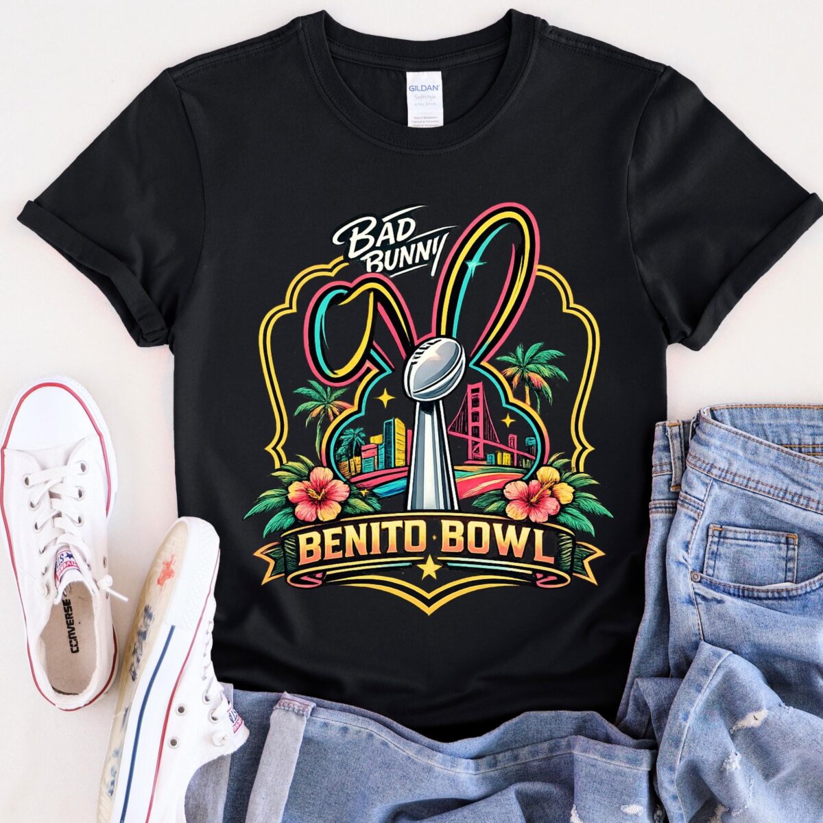 Bad Bunny Football Tee – Fun Benito Bowl Concert Shirt