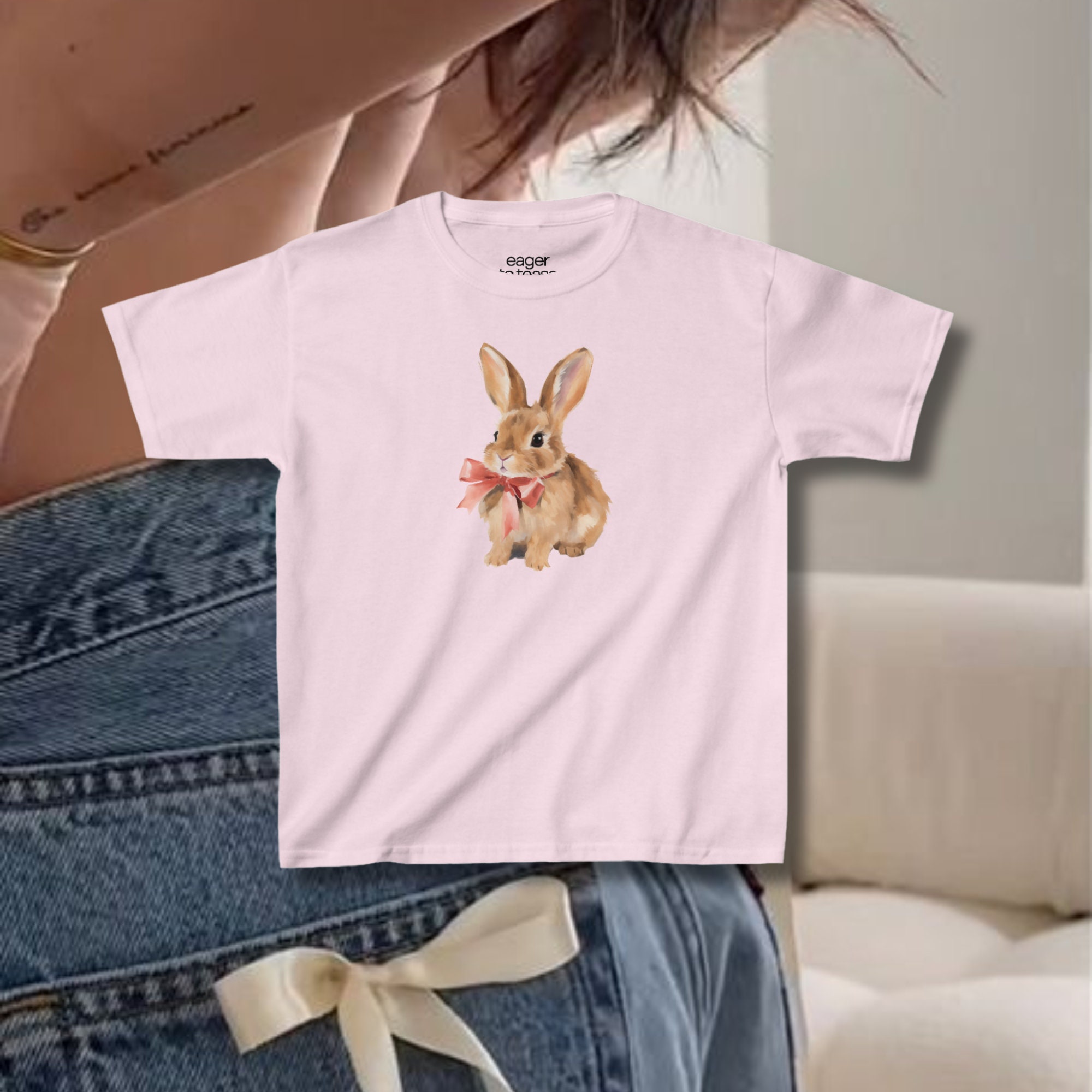 Bunny Baby Tee with Pink Bow – Vintage 90s Aesthetic Shirt