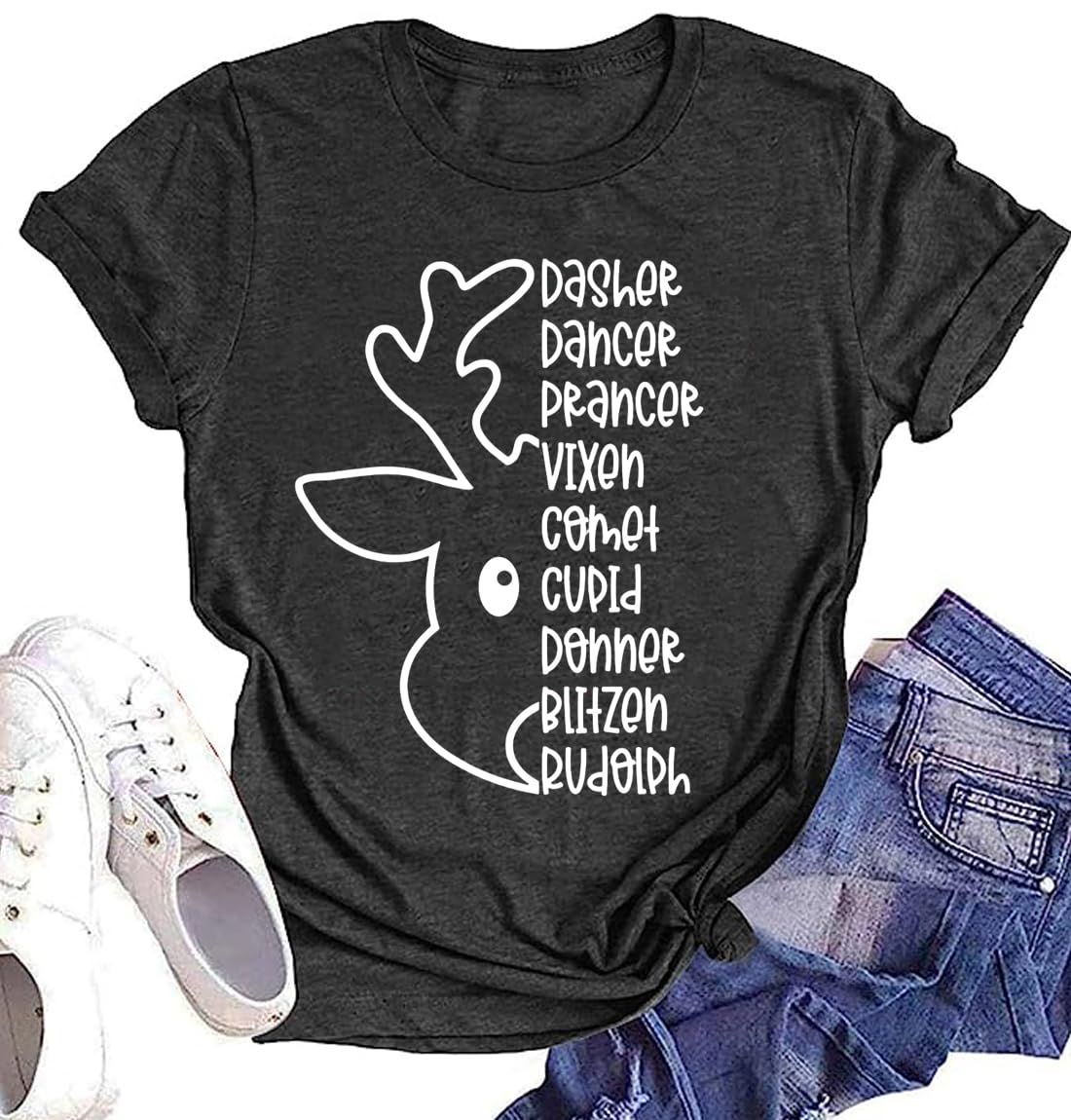 Featuring a fun and playful design, this shirt captures the essence of the holiday season without being overly festive. The graphic elements, like twinkling tree lights and cheerful lettering, add a touch of whimsy that will surely bring smiles. Moreover, the crew neck and short sleeves offer a classic silhouette that flatters all body types, ensuring you look great while embracing the holiday cheer.