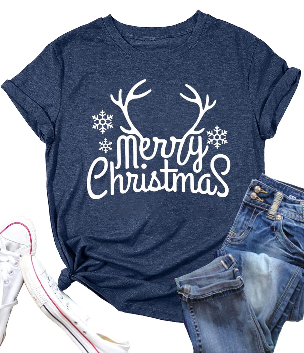 Get ready to shine this festive season with our Christmas Shirts for Women Funny Christmas Decoration Element Graphic Shirts Tree Light Letter Printing Family Tops. These charming tops blend humor and holiday spirit effortlessly, making them a must-have for your winter wardrobe.