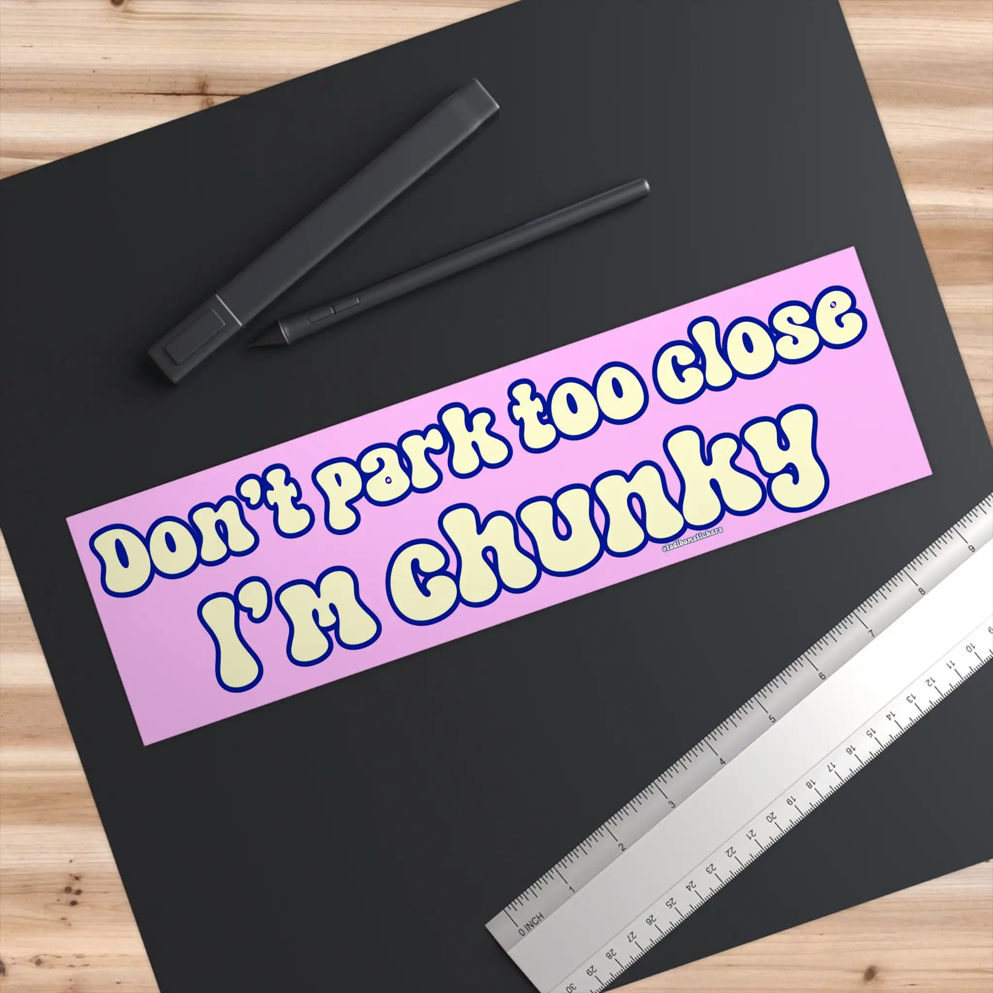 Elevate your collection of humorous accessories with the Don’t Park Too Close I’m Chunky | Bumper Sticker AND Magnet | Funny Meme Sticker | 8.7” X 2.7” | Waterproof Premium Quality. It’s the perfect blend of fun and functionality that will have everyone smiling!