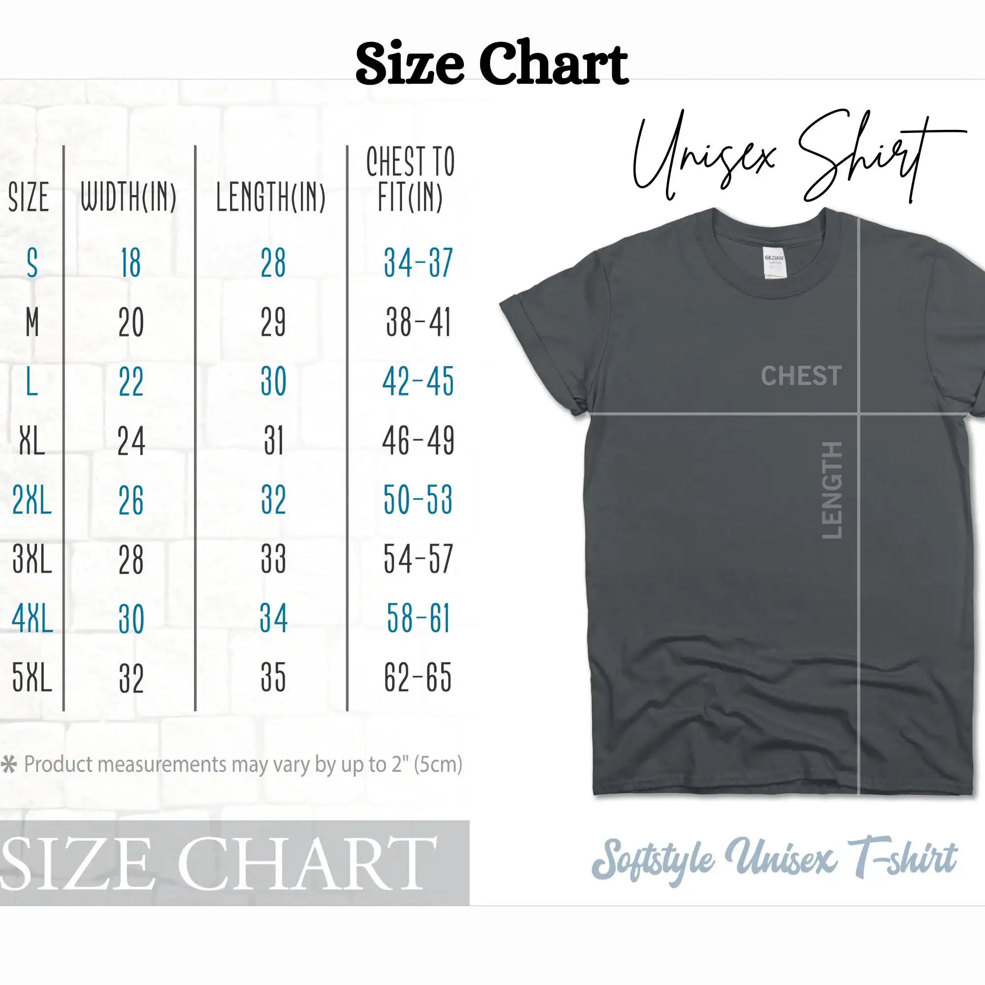 UNISEX T-SHIRT SIZE GUIDE