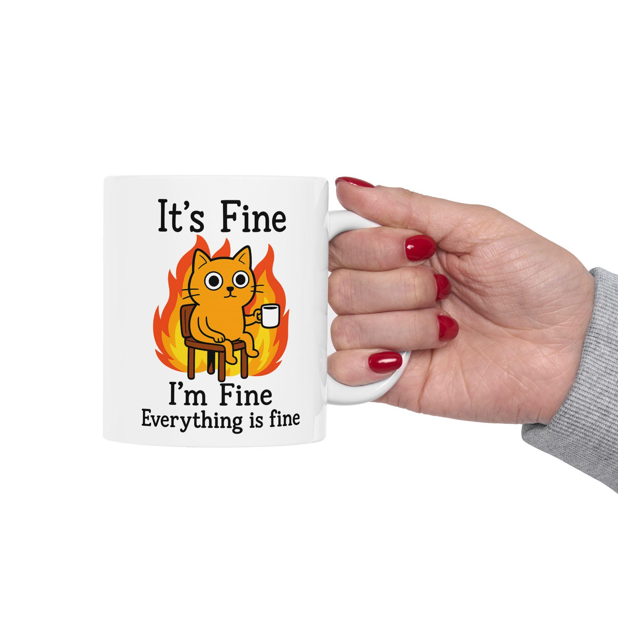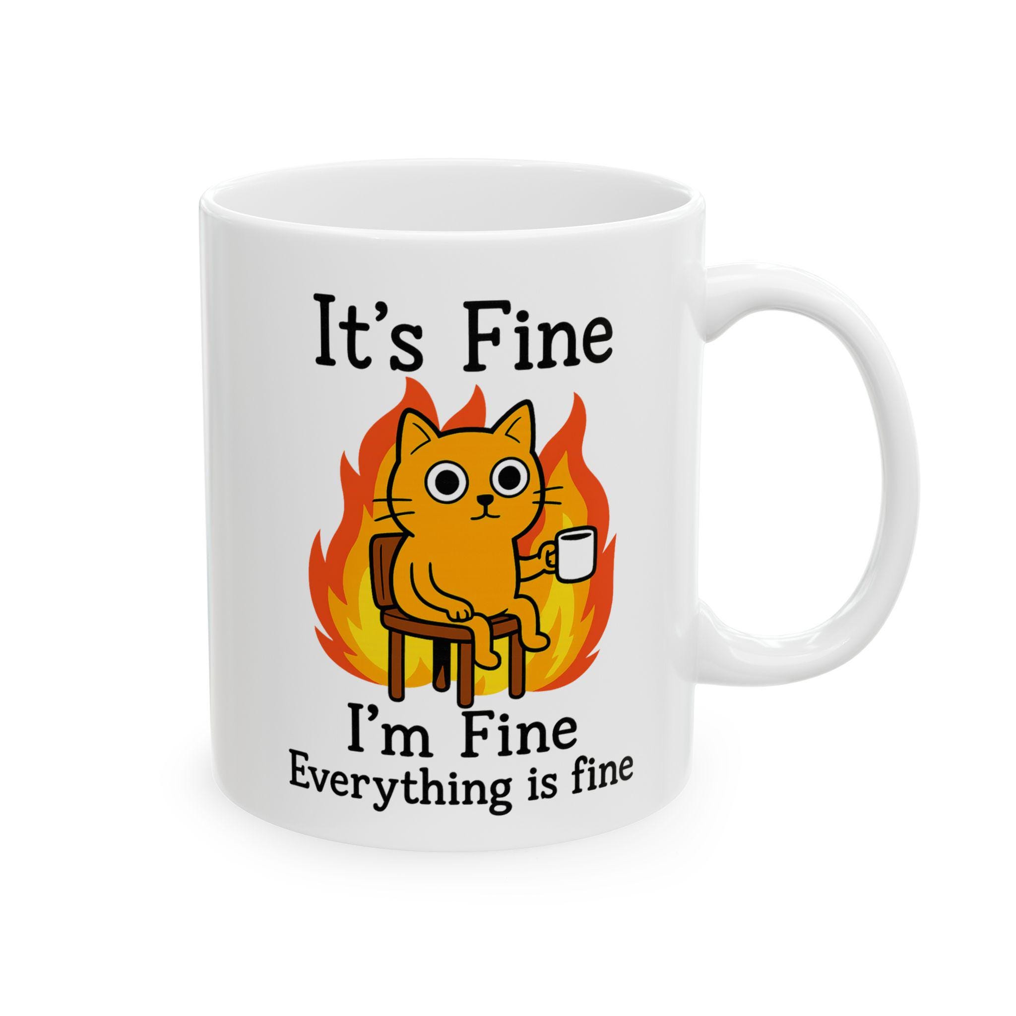 Funny Cat Meme Mug – It’s Fine Sarcastic Coffee Cup Gift