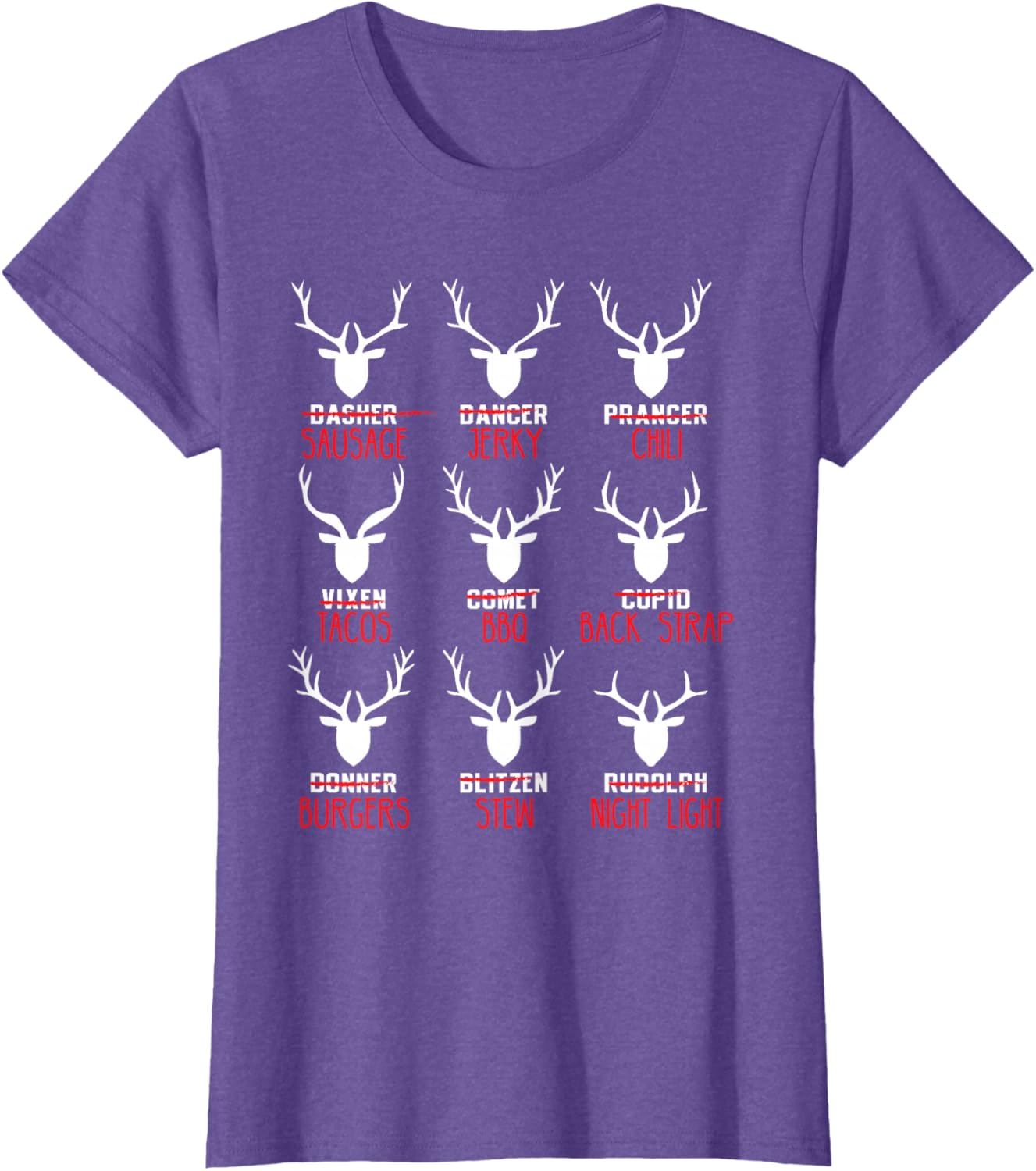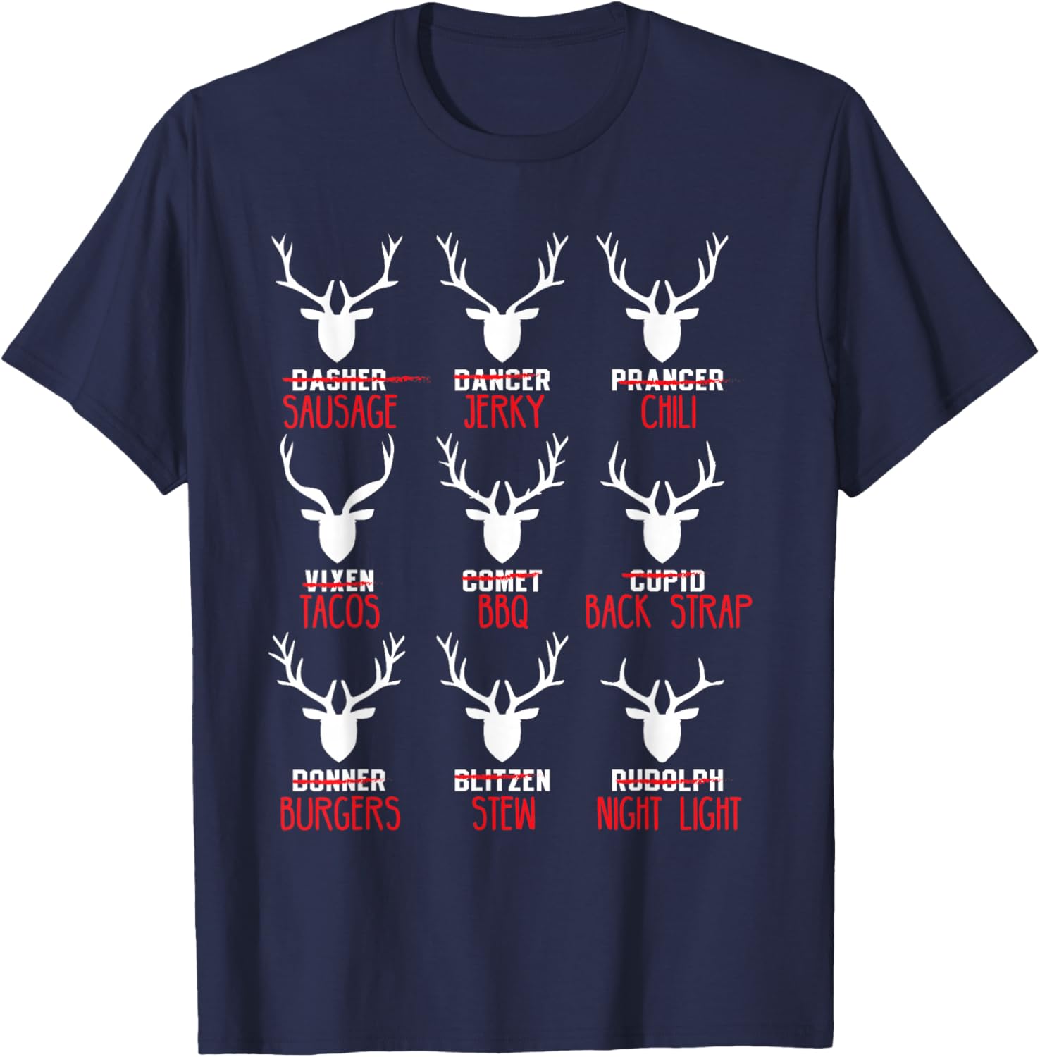 Moreover, the T-shirt’s vibrant graphics and festive colors capture the essence of the season. Each reindeer is represented, from Dasher to Rudolph, appealing to hunters and holiday lovers alike. This unique design is not just a fashion choice; it’s a conversation starter that can easily bring a smile to anyone’s face.