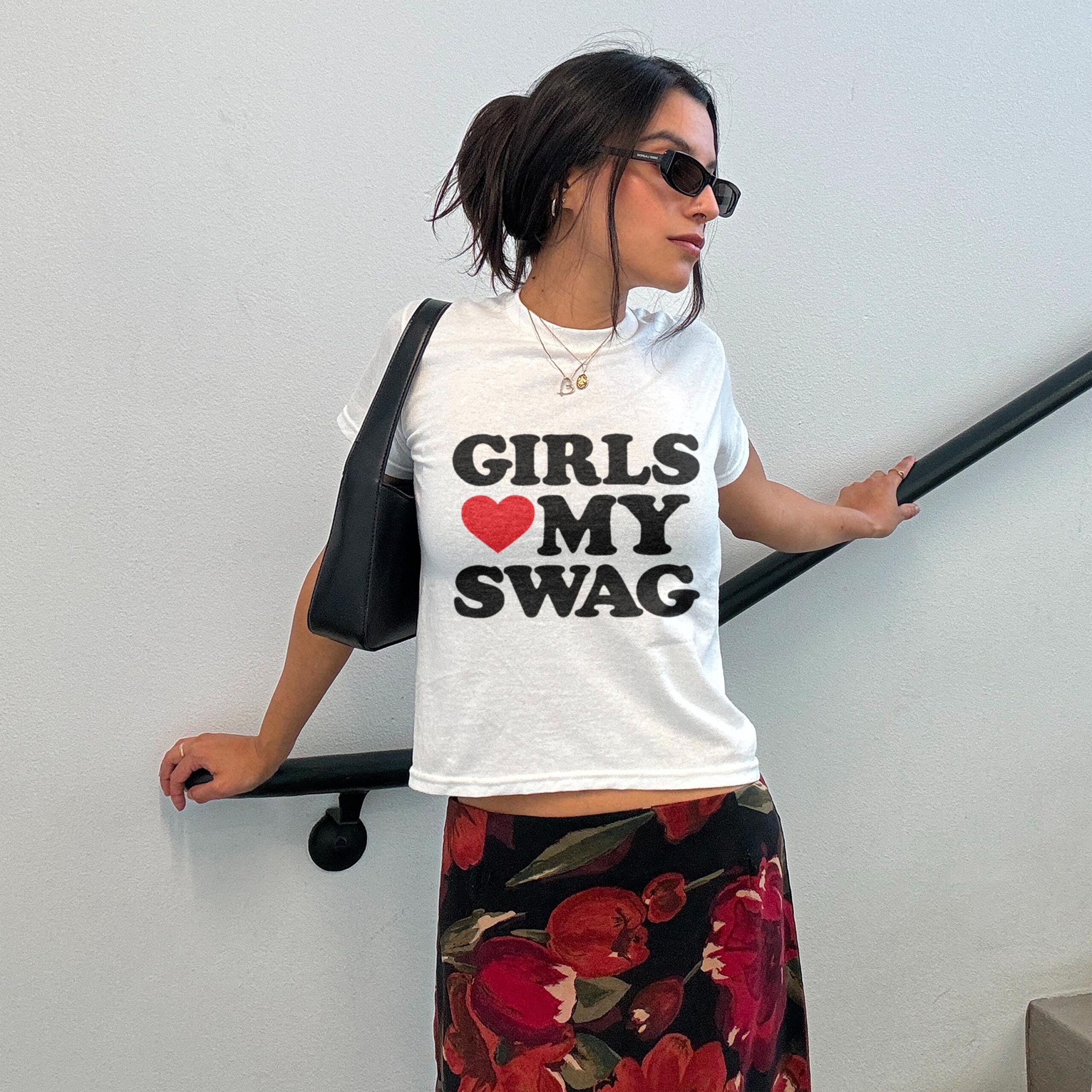 Introducing the Funny Meme Baby Tee, Girls Love Heart My Swag Y2K Crop Top, Trendy Retro Aesthetic Shirt, Cute Sassy Graphic Fitted Tee For Women! This playful and modern tee is designed to capture the essence of fun, confidence, and a bold sense of style. Whether you’re heading out with friends or lounging at home, this tee is the perfect addition to elevate your wardrobe.