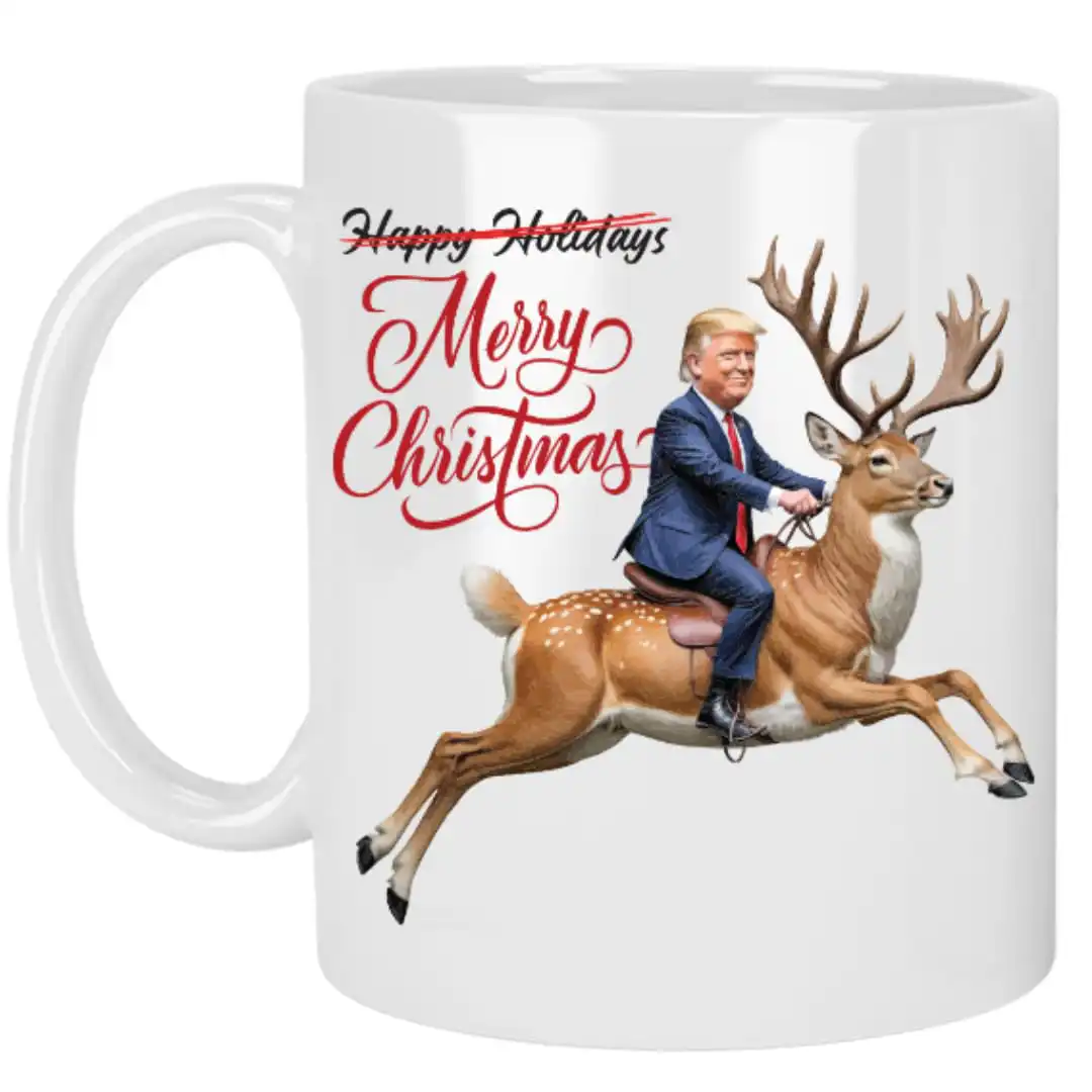 The design of this mug features a whimsical Christmas reindeer and a playful nod to the President of the United States. Its modern, heavy-duty construction ensures it can withstand daily use, while the vibrant graphics are printed on both sides—perfect for left-handed coffee lovers! Moreover, it showcases a unique blend of charm and wit, making each sip a delightful experience.