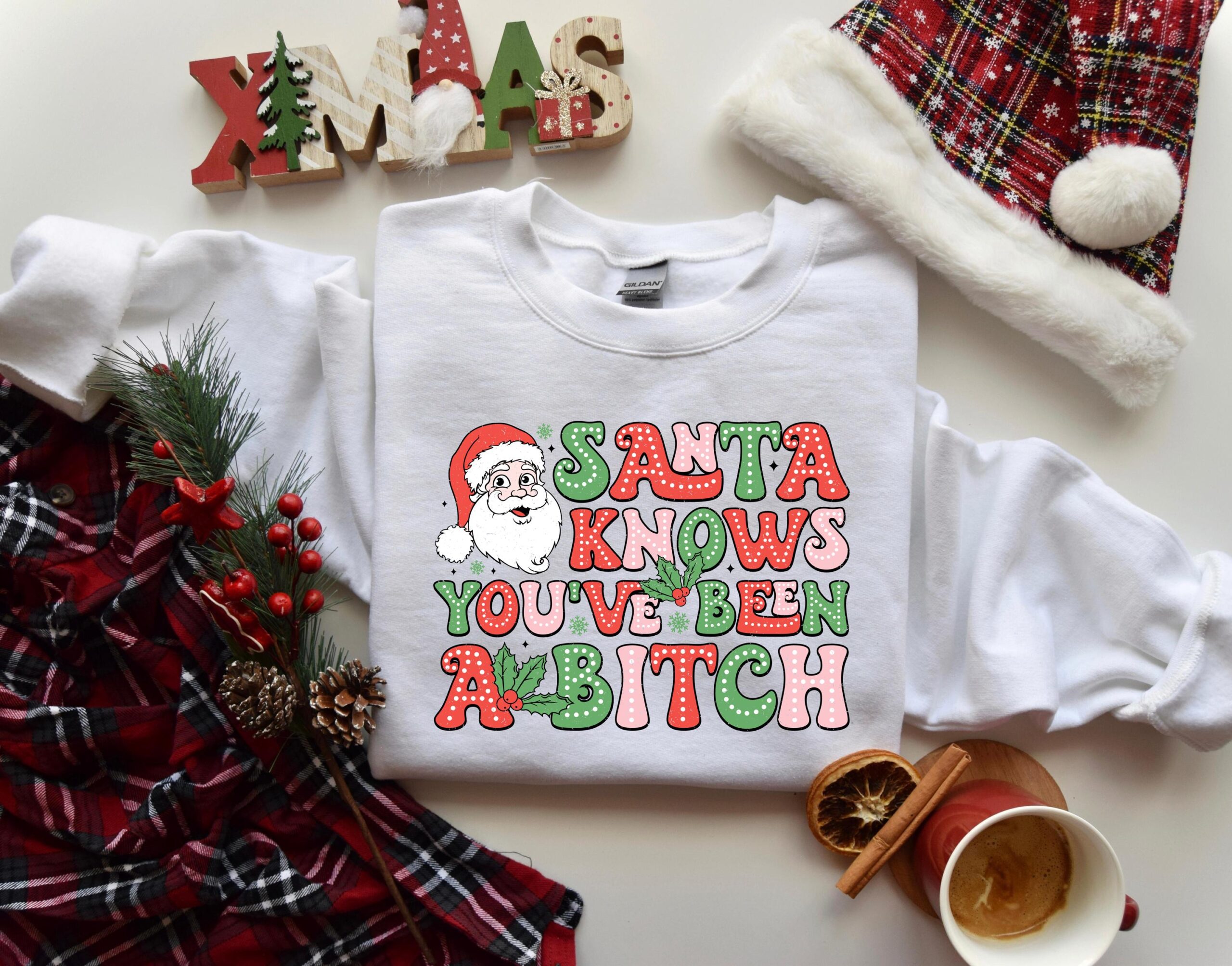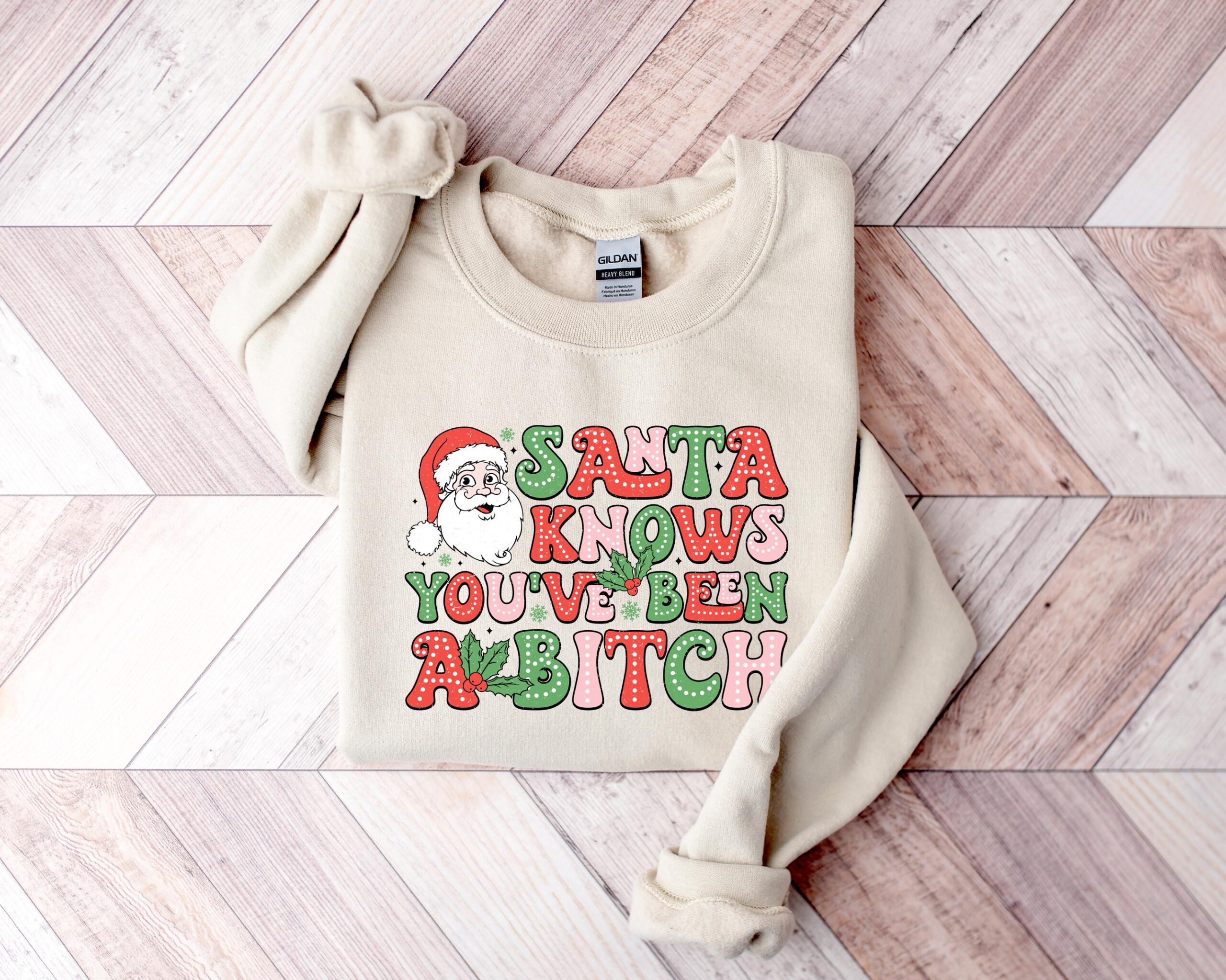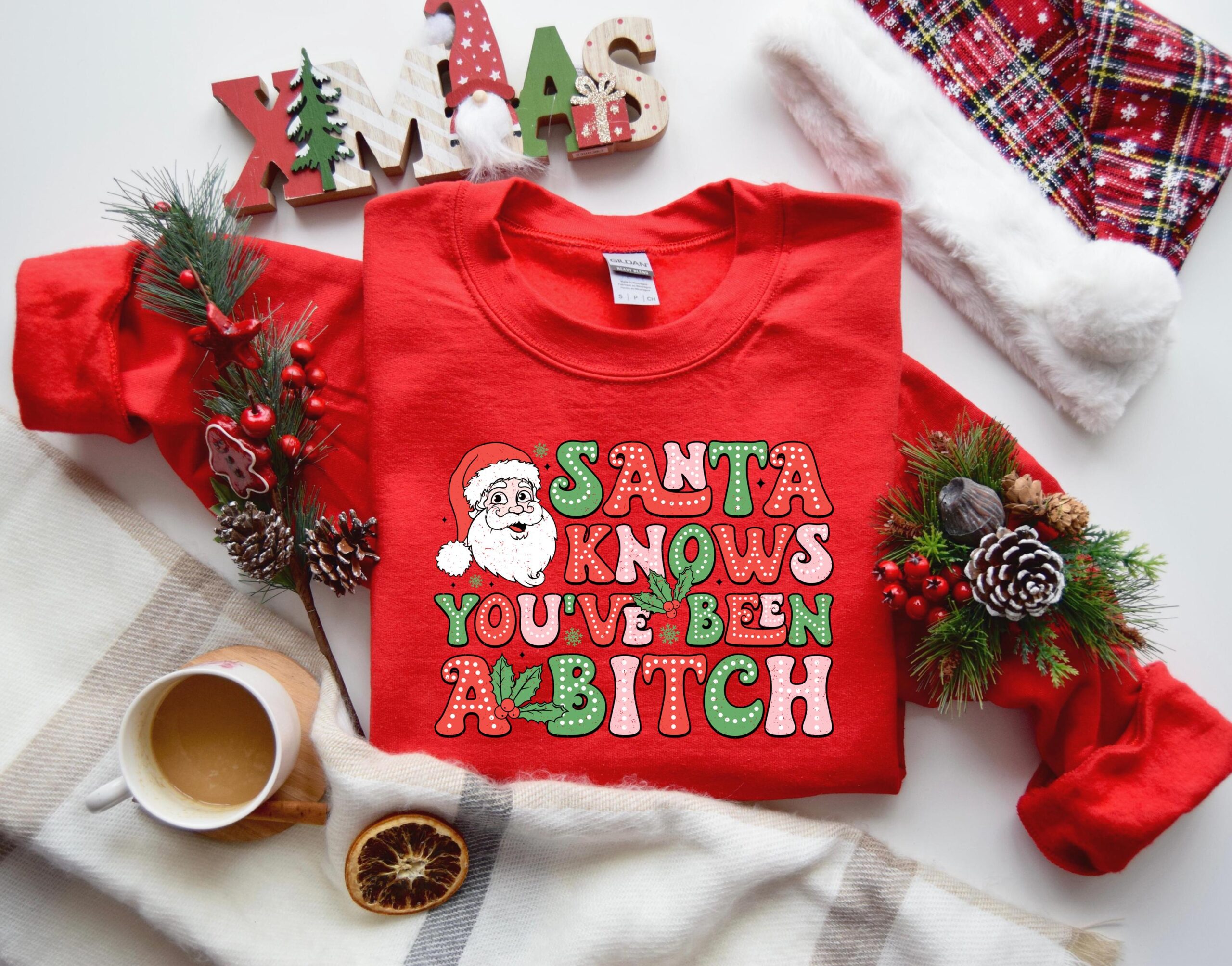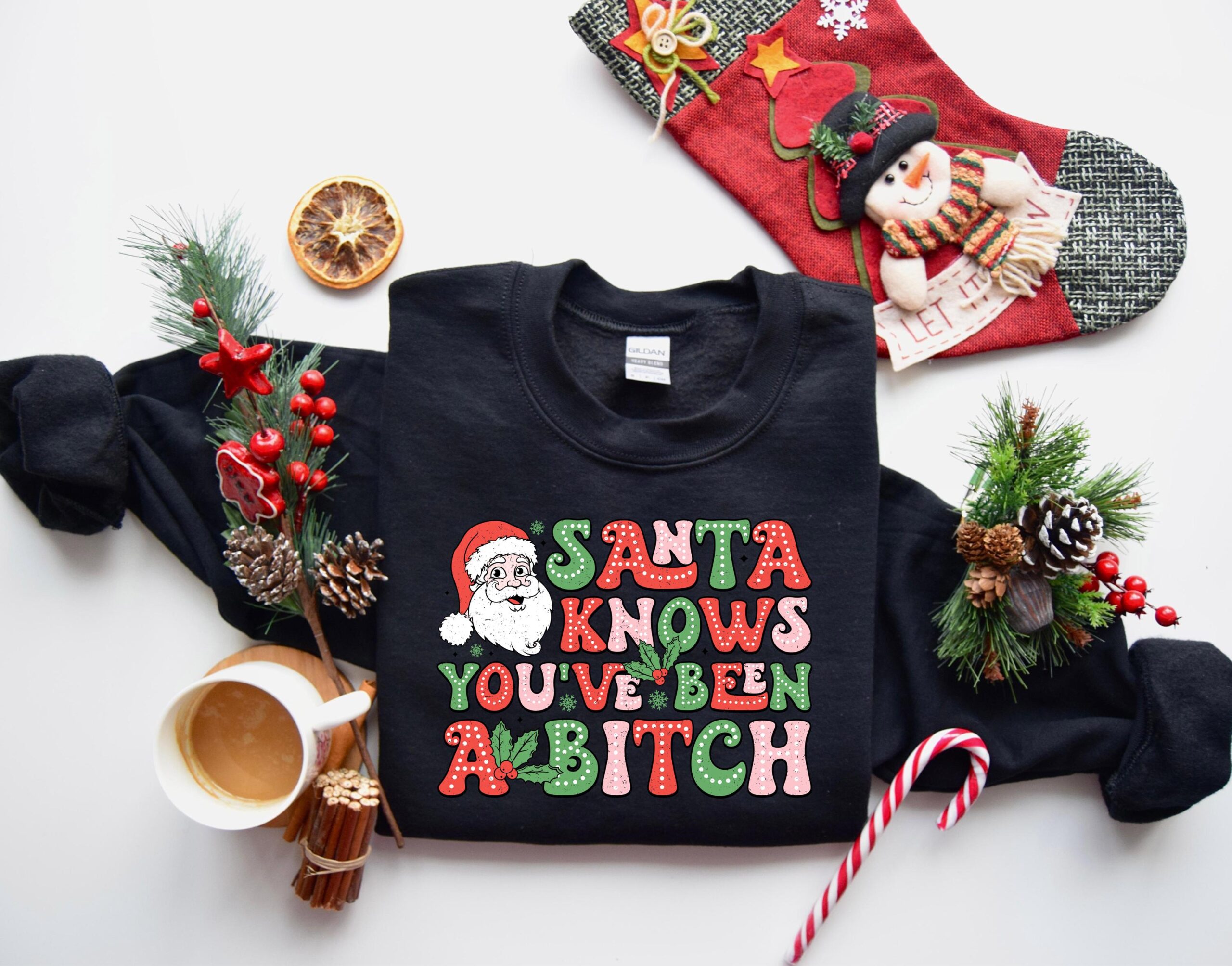 Get ready to have some fun this holiday season with our Funny Santa Shirt, featuring the cheeky phrase “Santa Knows You’ve Been Bitch.” This Sarcastic Christmas Shirt is perfect for those who love adult humor and want to stand out at any festive gathering. Plus, it’s made from soft, breathable fabric for all-day comfort, making it a must-have addition to your winter wardrobe. Embrace the holiday spirit with a touch of wit!