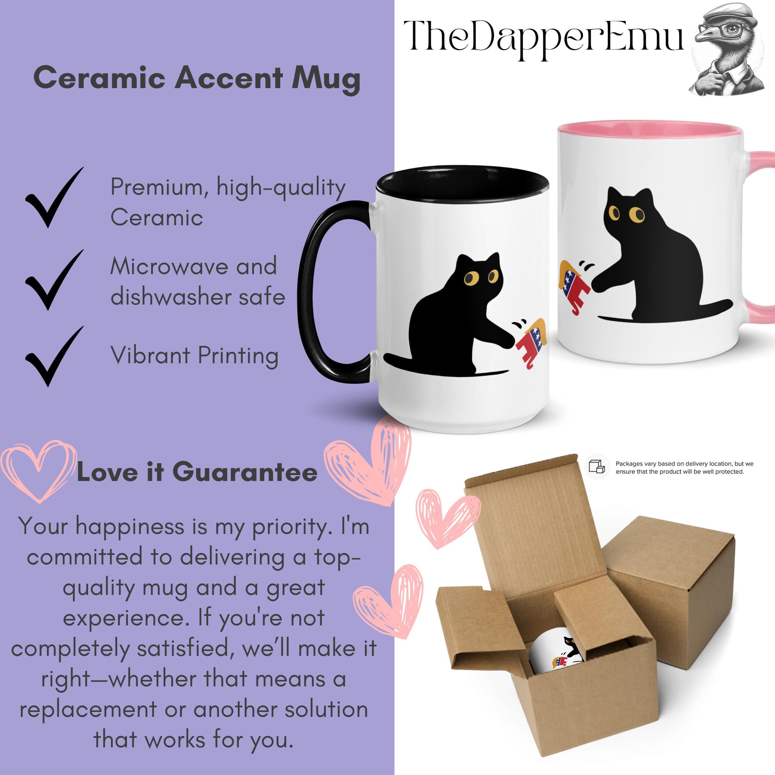 Start your day with a touch of humor and a dash of rebellion with the Cat Anti Trump Mug/Sarcastic Coffee Mug/Gift for Liberal/FDT/Grumpy Black Cat Mug/Not My President/Subtle Anti Trump Mug/Trump Parody/Resist. This playful yet pointed coffee mug is a must-have for anyone who enjoys a good laugh with their morning brew while subtly expressing their political views.
