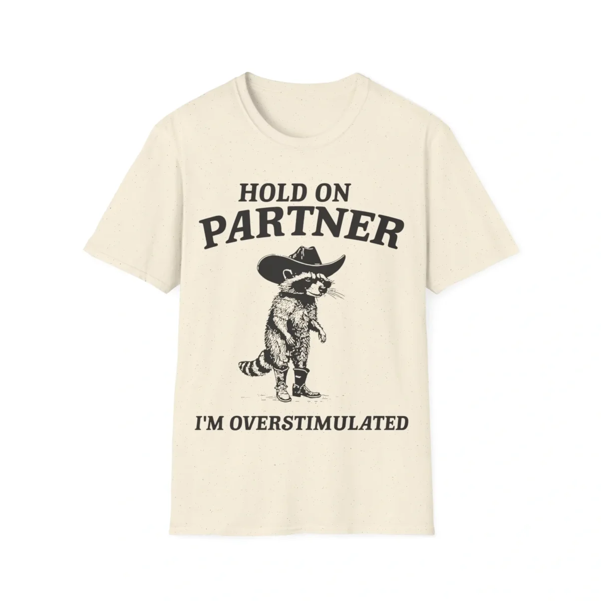 Hold On Partner I’m Overstimulated Raccoon Shirt – Fun Cowboy Tee