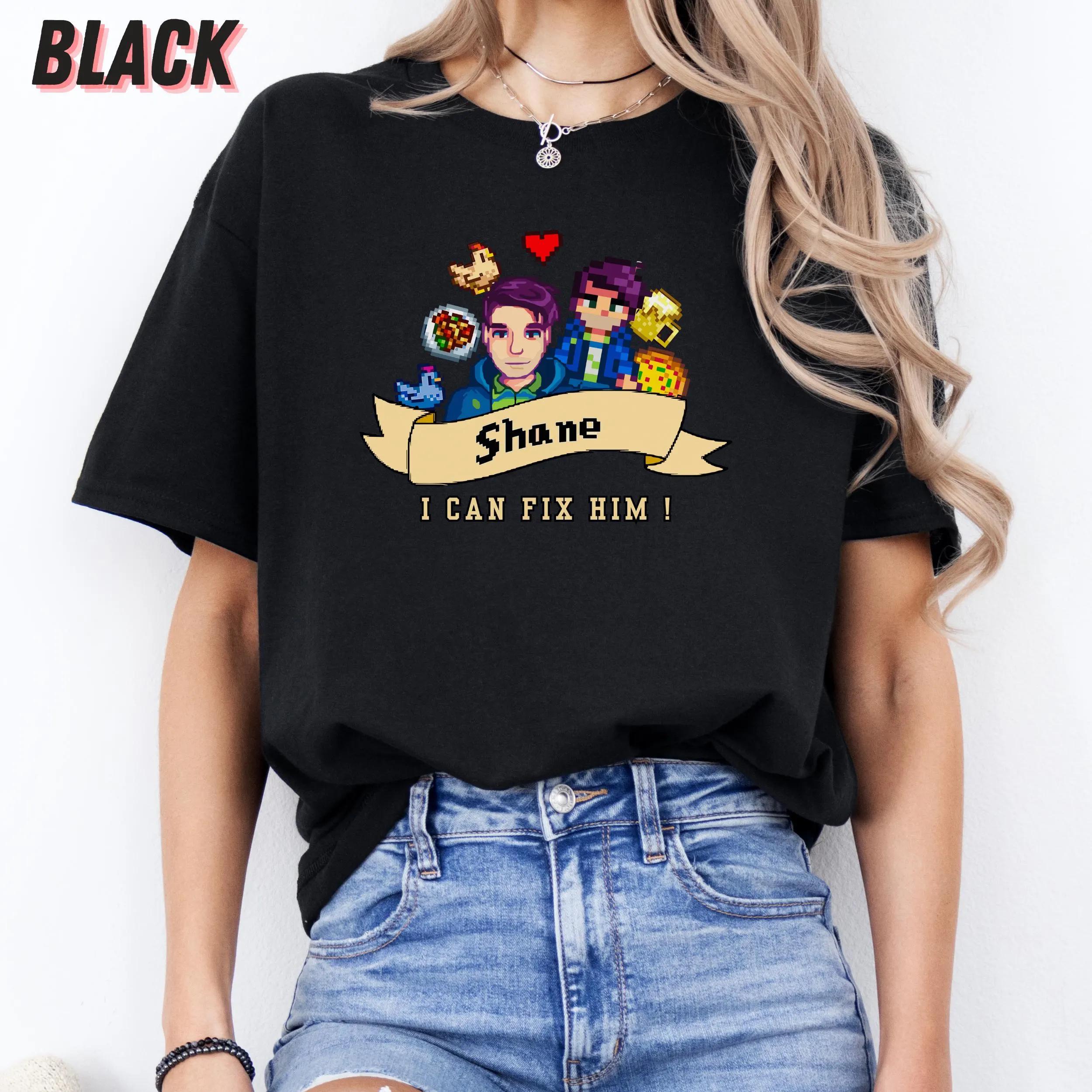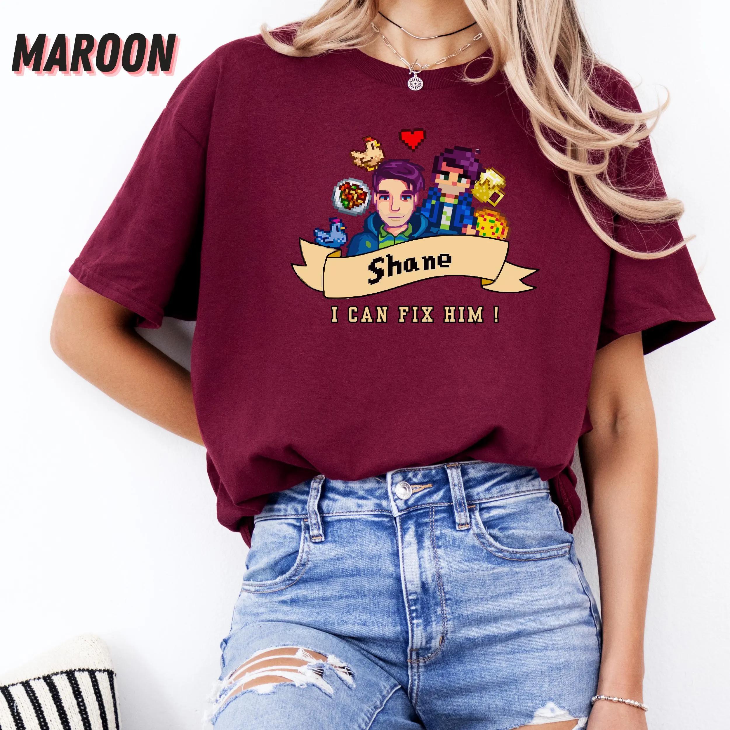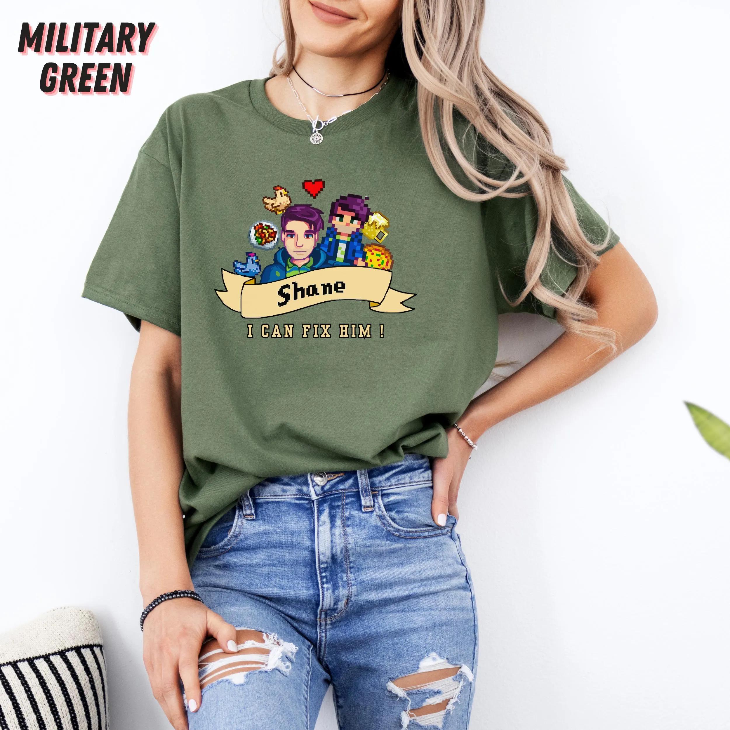 This shirt features a clever design that resonates with Stardew Valley fans, making it not just an item of clothing but a statement piece. The playful phrase “I Can Fix Him” captures the essence of Shane’s character, wrapping it in a light-hearted, relatable vibe. As a unisex tee, it fits comfortably on anyone, making it versatile and suitable for all gender expressions.