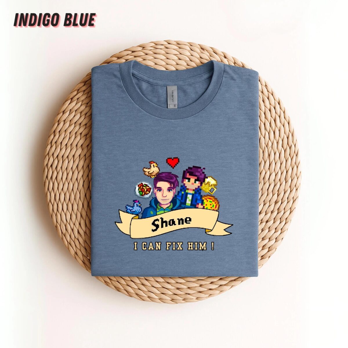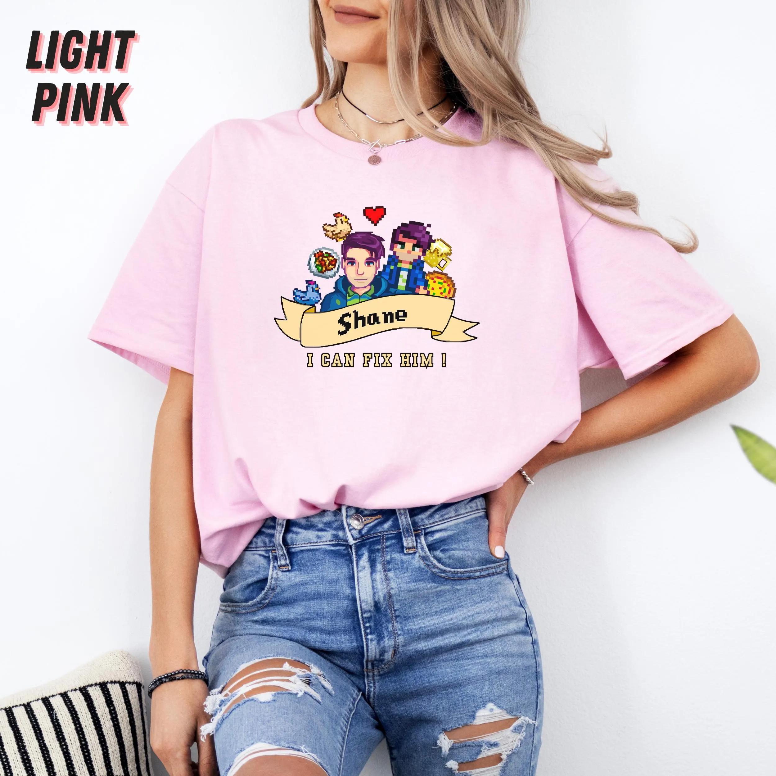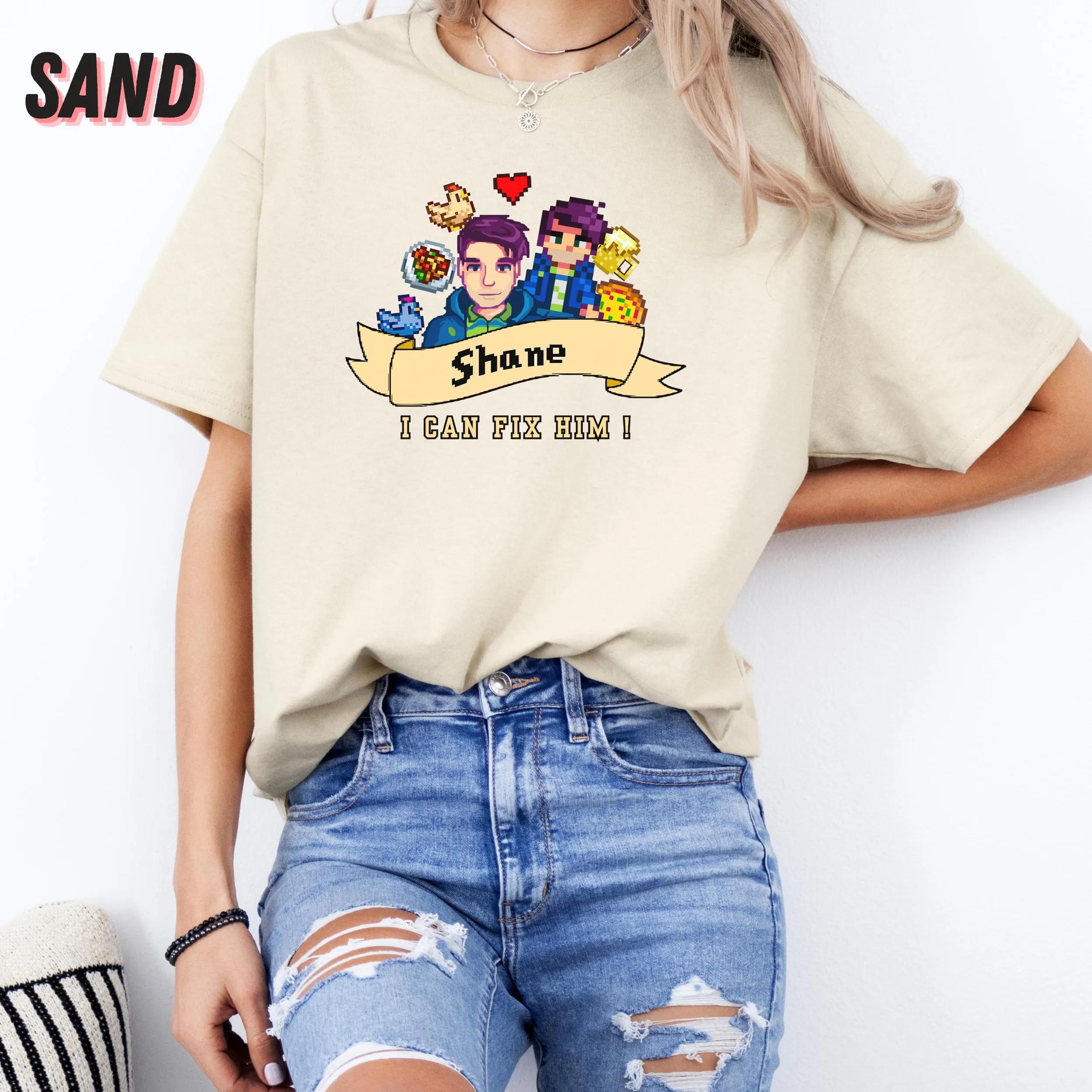 This shirt features a clever design that resonates with Stardew Valley fans, making it not just an item of clothing but a statement piece. The playful phrase “I Can Fix Him” captures the essence of Shane’s character, wrapping it in a light-hearted, relatable vibe. As a unisex tee, it fits comfortably on anyone, making it versatile and suitable for all gender expressions.