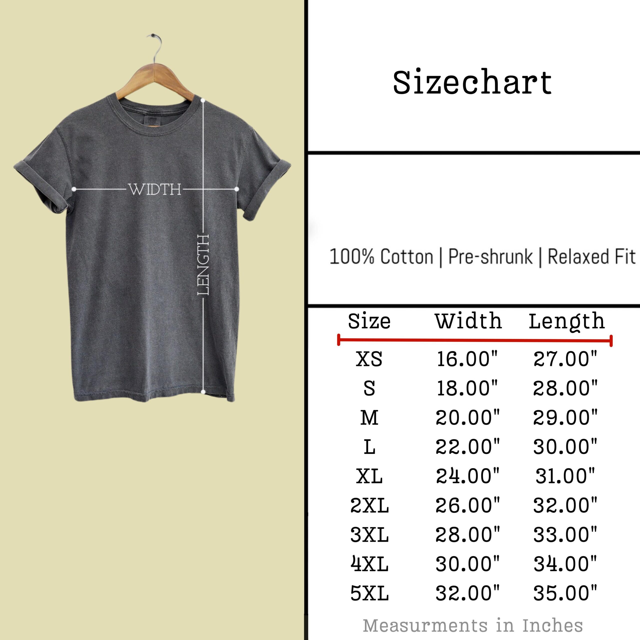 UNISEX T-SHIRT SIZE GUIDE