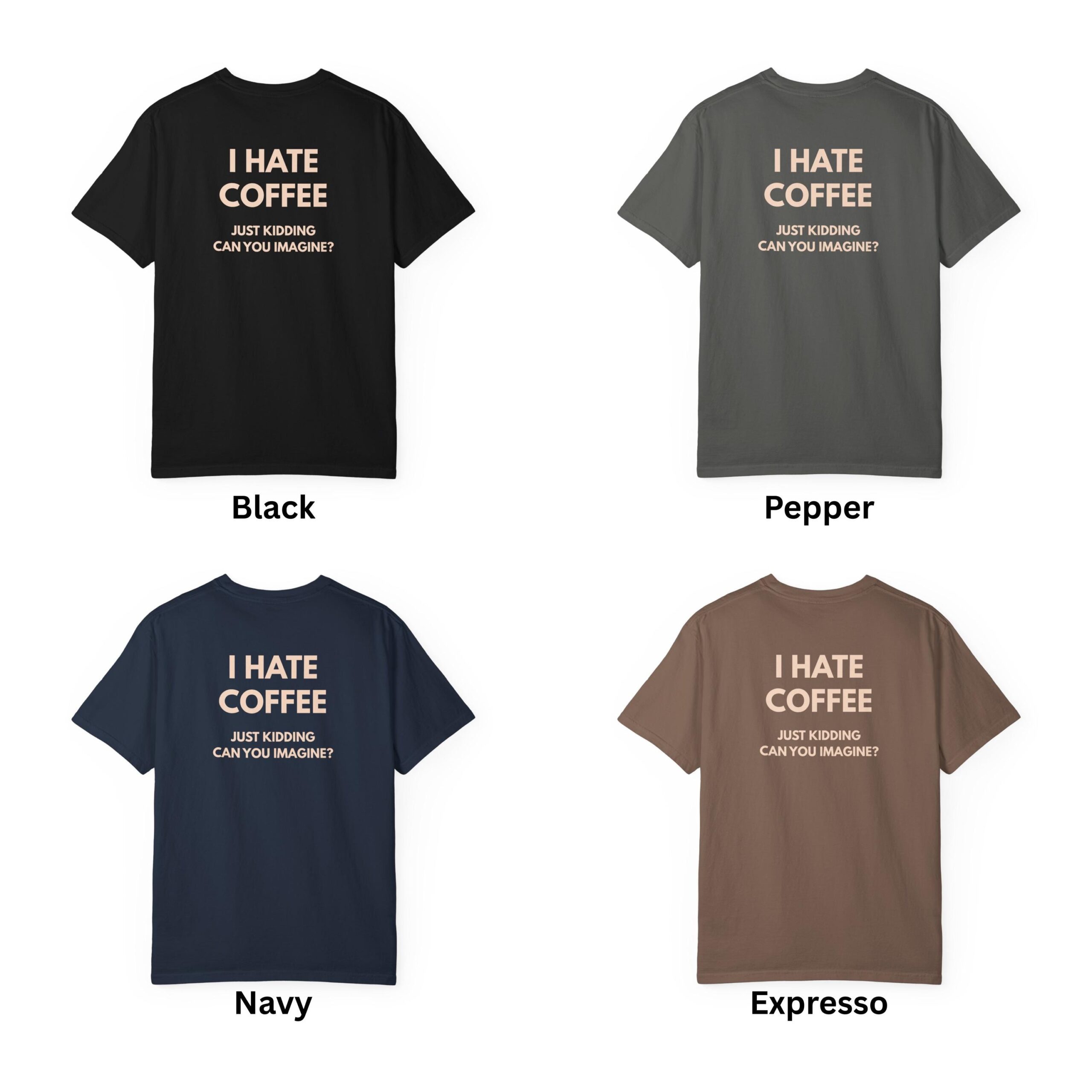I Hate Coffee Just Kidding Tee – Funny Unisex Coffee Lover Shirt