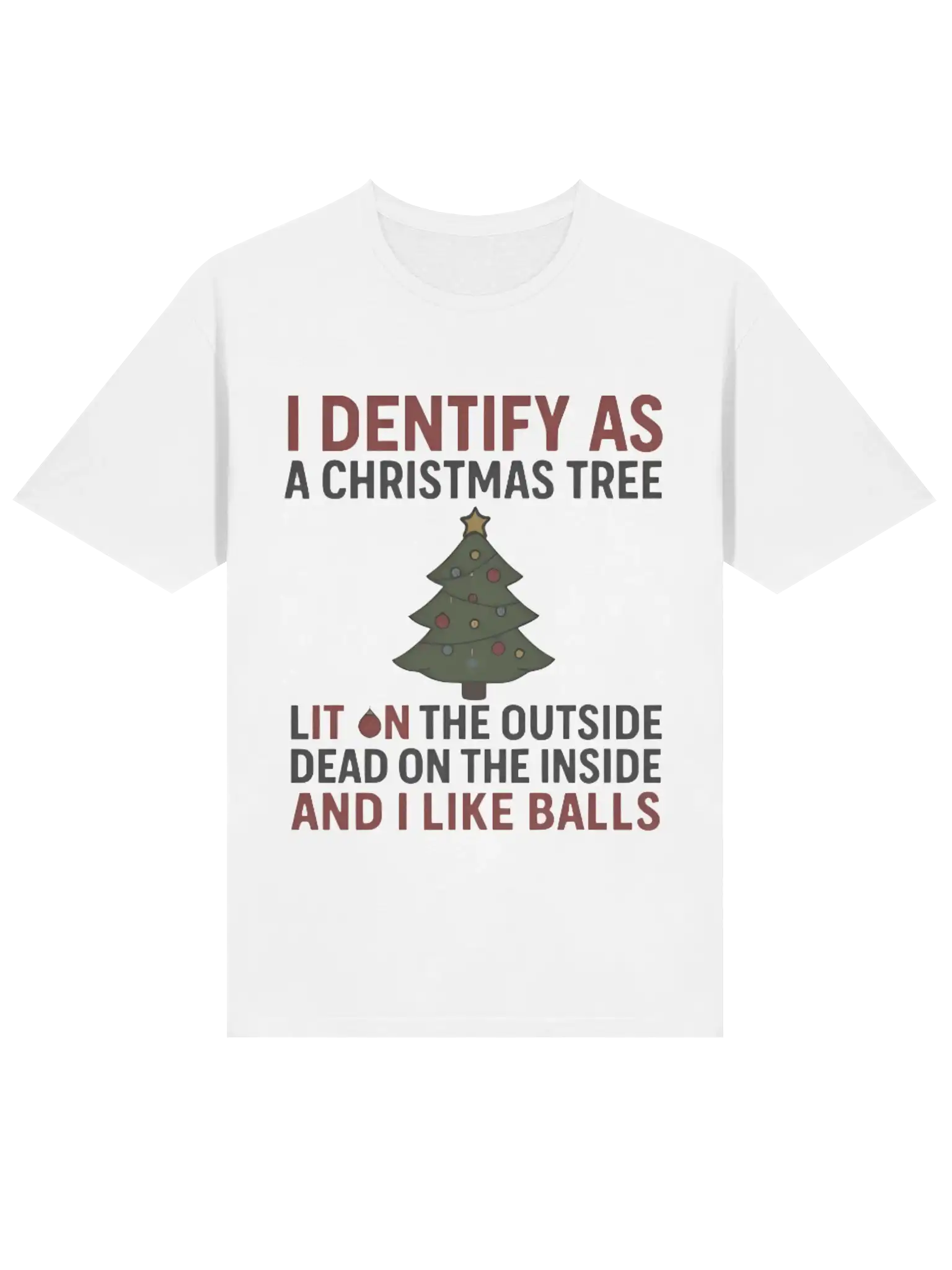 Embrace the festive spirit with a twist of humor and style with the I Identify As A Christmas Tree Lit On The Outside Dead On The Inside And I Like Balls Shirt. It’s not just a shirt; it’s a celebration of the wild and wonderful chaos that comes with the holiday season!