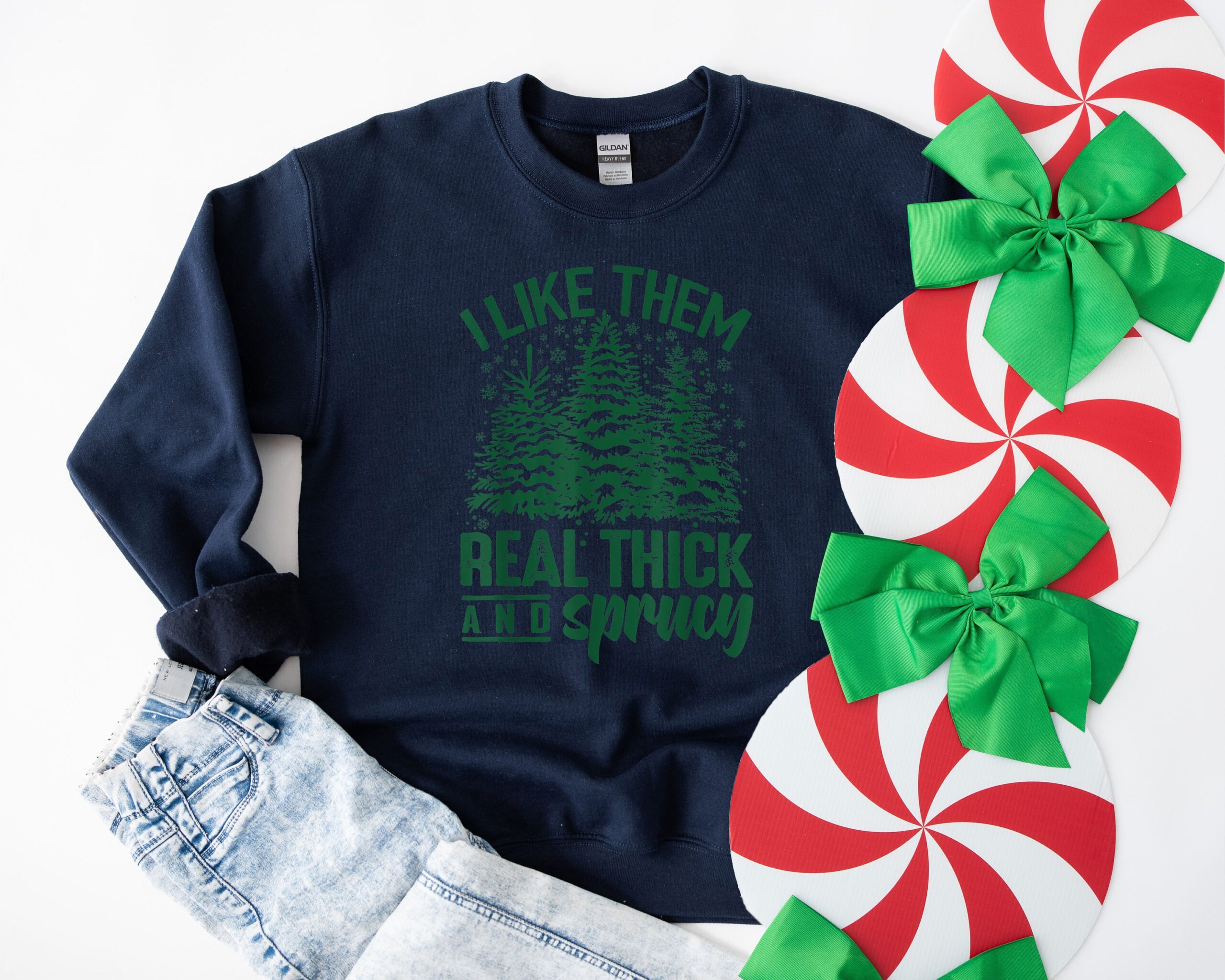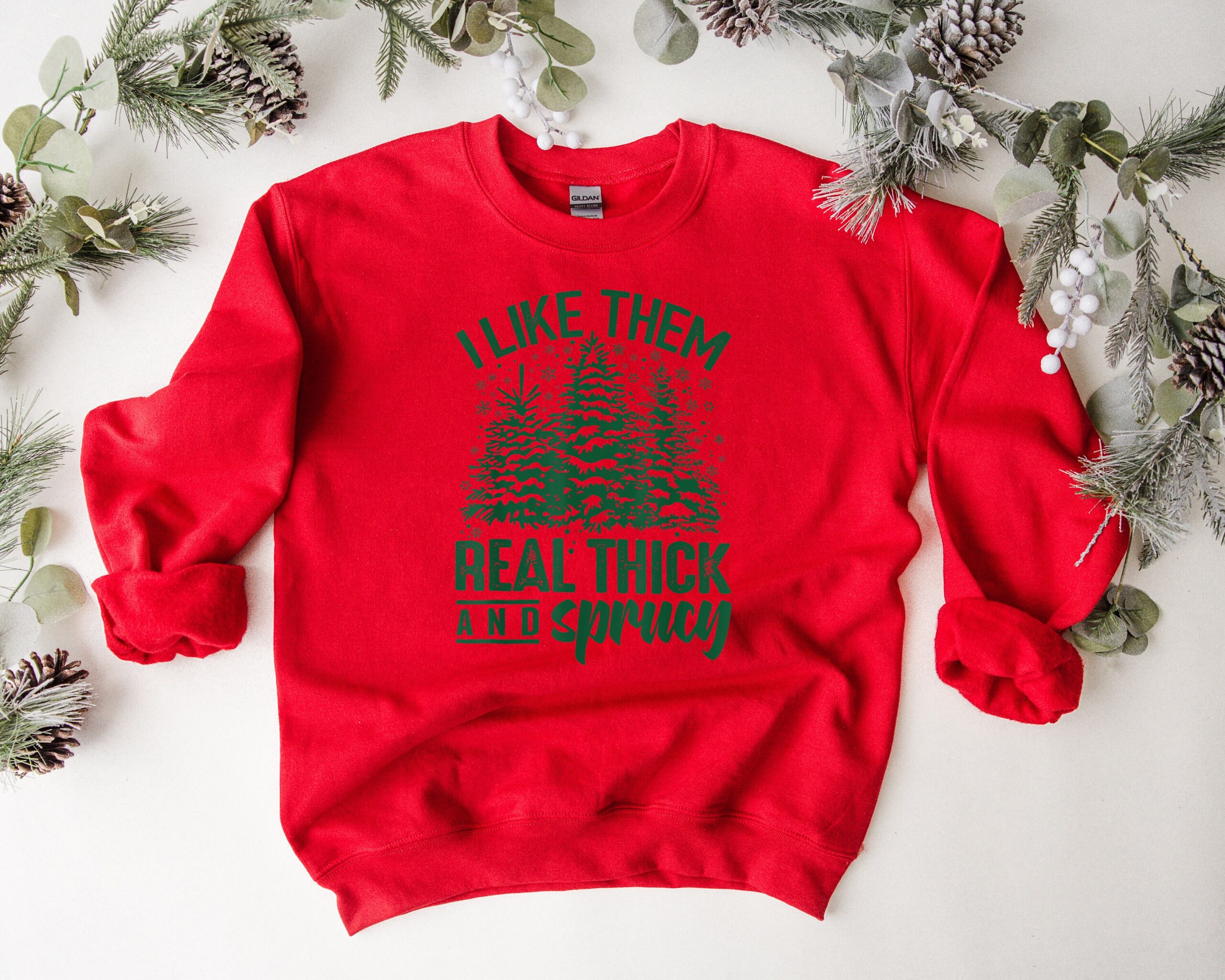 Embrace the festive spirit with the I Like Them Real Thick And Sprucey Sweatshirt. It’s more than just a piece of clothing; it’s a statement of joy and laughter. Get yours today and make this Christmas even more memorable!
