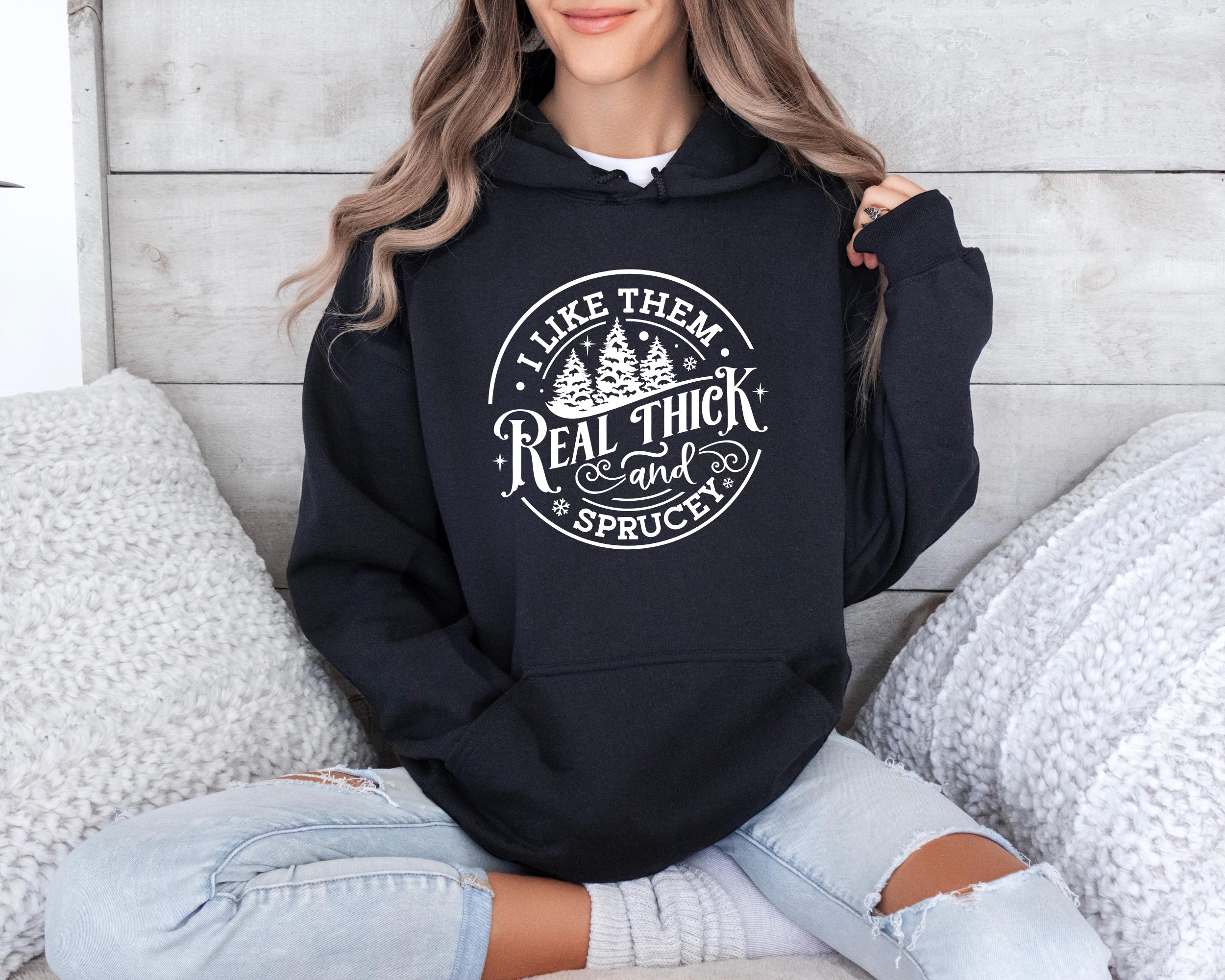 Get ready to celebrate the season with the I Like Them Real Thick and Sprucy Sweatshirt, a funny Christmas hoodie perfect for any holiday gathering! This cozy and playful sweatshirt combines humor with comfort, making it an essential addition to your festive wardrobe. Plus, its relaxed fit and soft fabric ensure you stay stylish and comfortable whether you’re at a party or lounging at home. Embrace the holiday spirit with a smile!