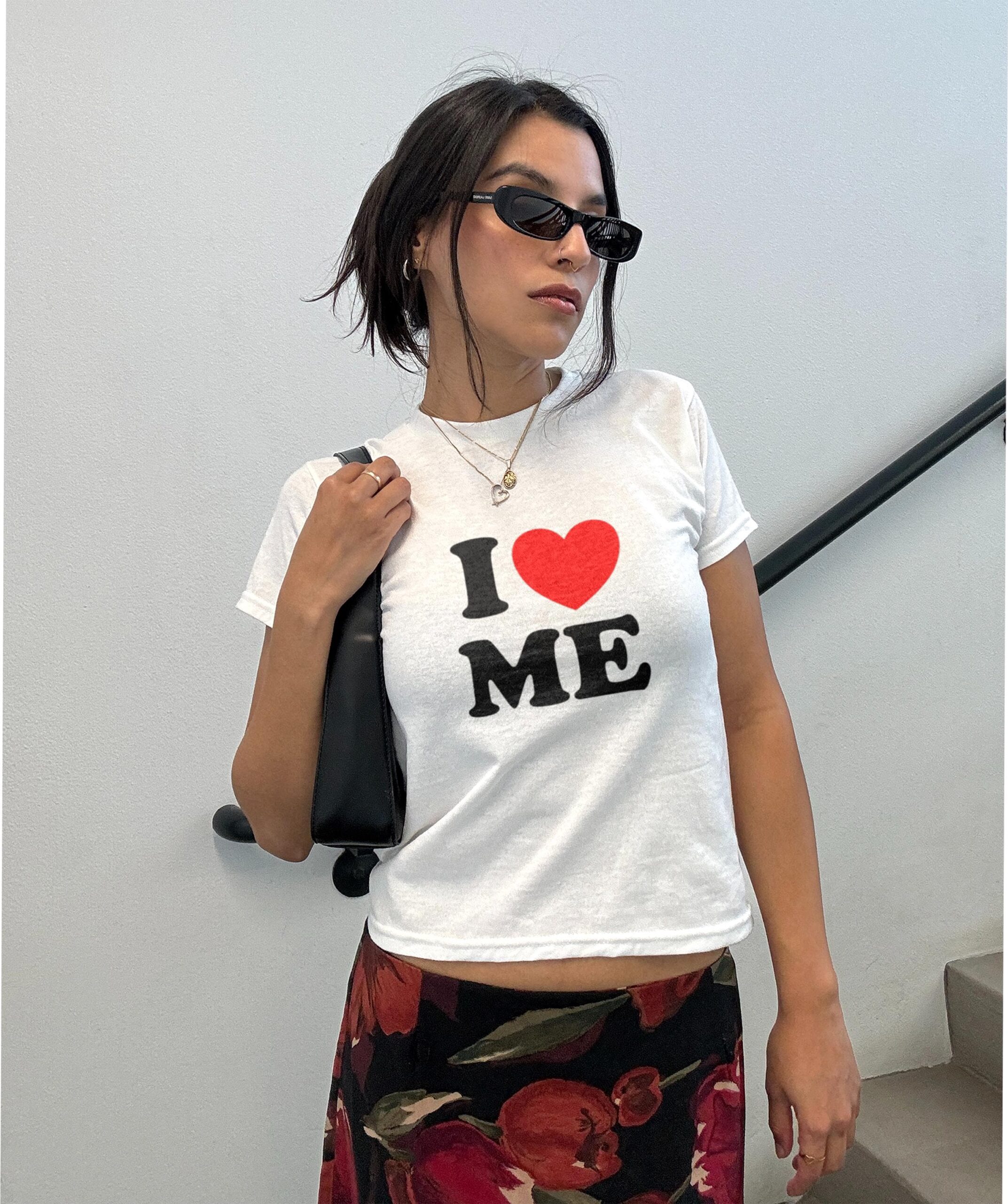 Embrace your bold side with the I Love Me Myself And I Retro Y2K Vintage Baby Tee Funny Self Love Shirt Red Heart Graphic Top Confident Sassy Aesthetic Tee, and make it a staple for your casual everyday wear.