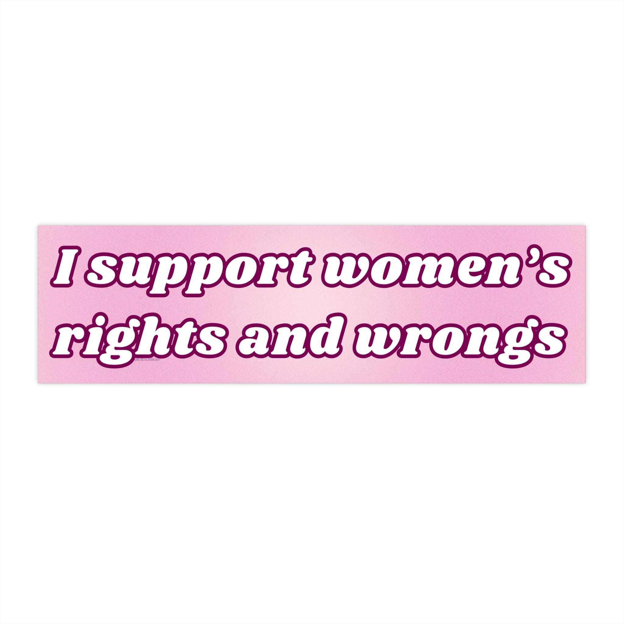 Upgrade your space with the I support women’s rights and wrongs | Bumper Sticker AND Magnet | Funny Meme Sticker | 8.7” X 2.7” | Waterproof Quality. It’s time to show the world what you stand for with style!