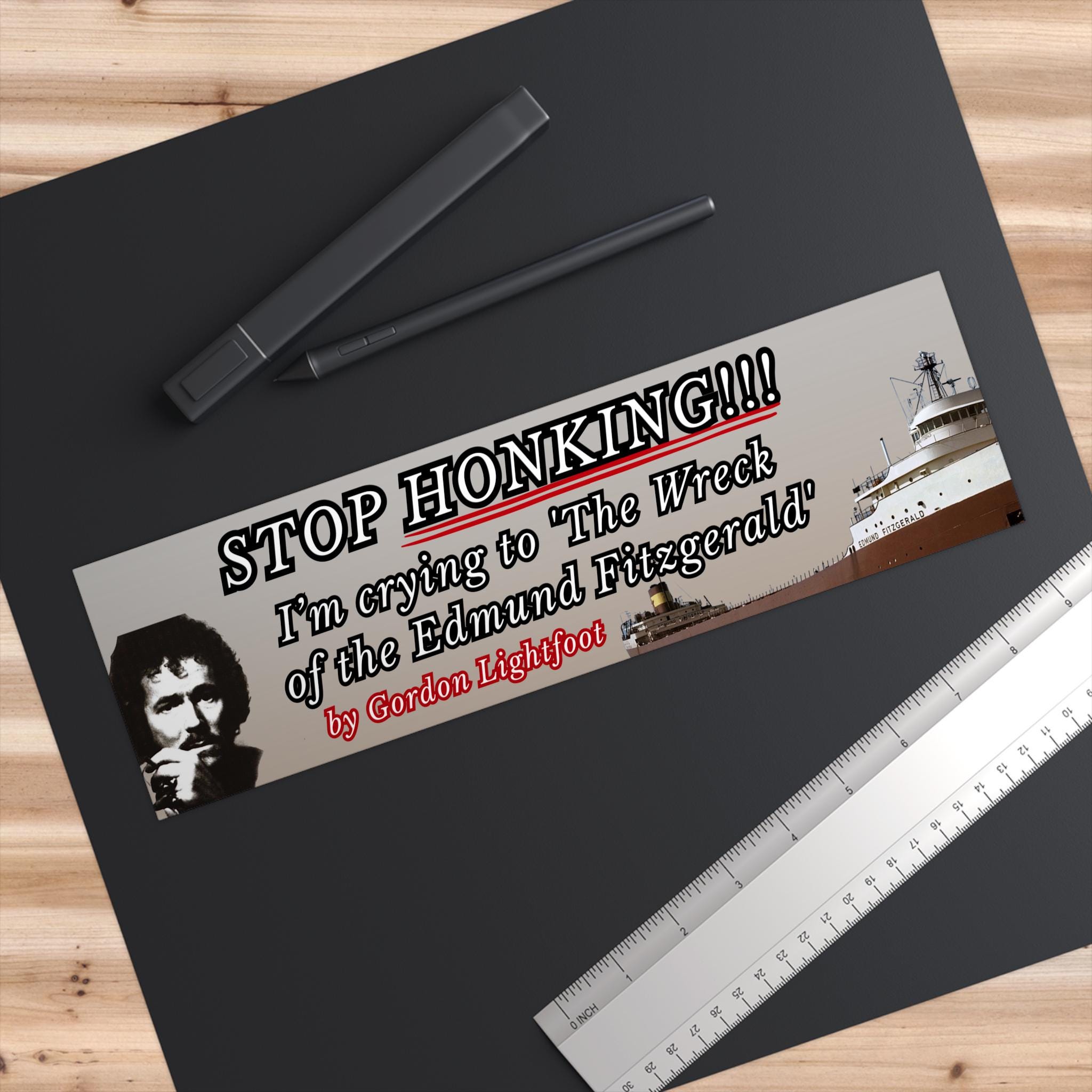 Introducing the I’m crying to The Wreck of the Edmund Fitzgerald by Gordon | Bumper Sticker AND Magnet | Funny Sticker | 8.7” X 2.7” |—a unique way to express your humor and personality. This high-quality sticker adds a playful touch to your car, laptop, or any smooth surface while making a bold statement.