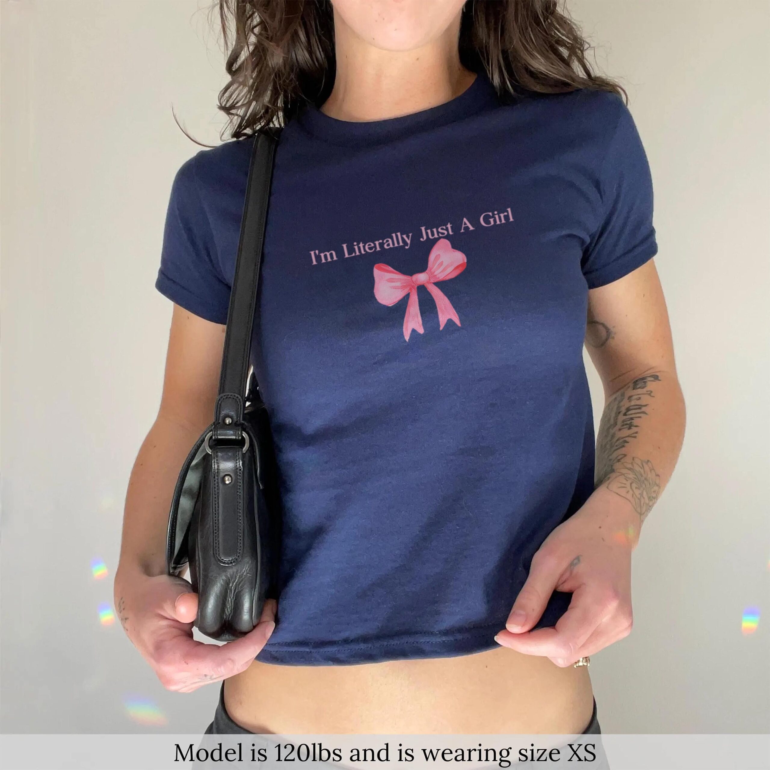 I’m Literally Just A Girl Tee – Y2K Pink Bow Aesthetic Crop Top