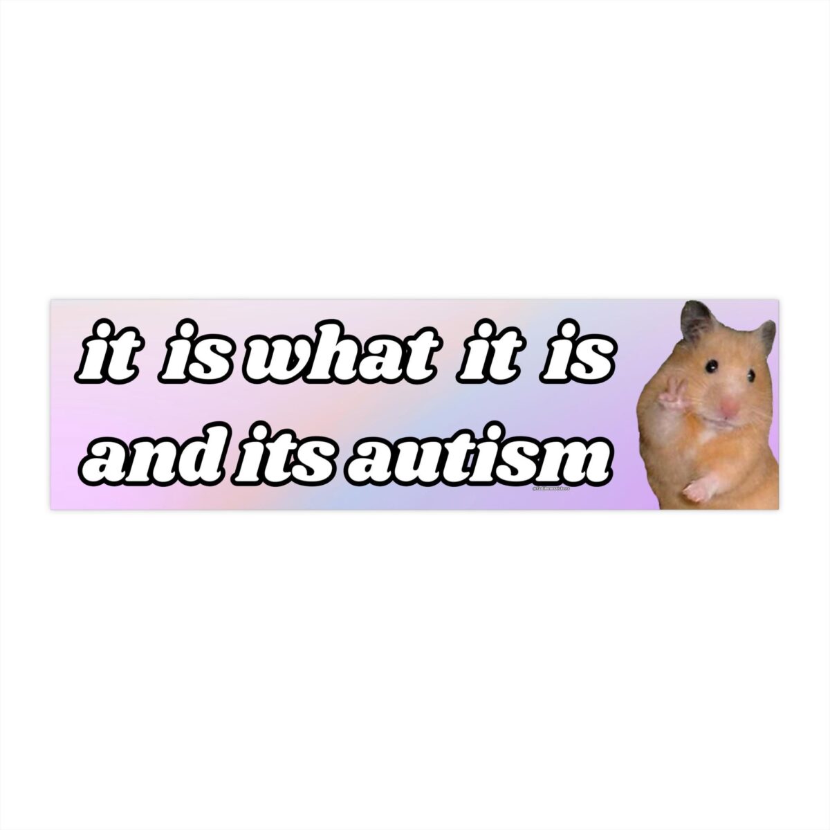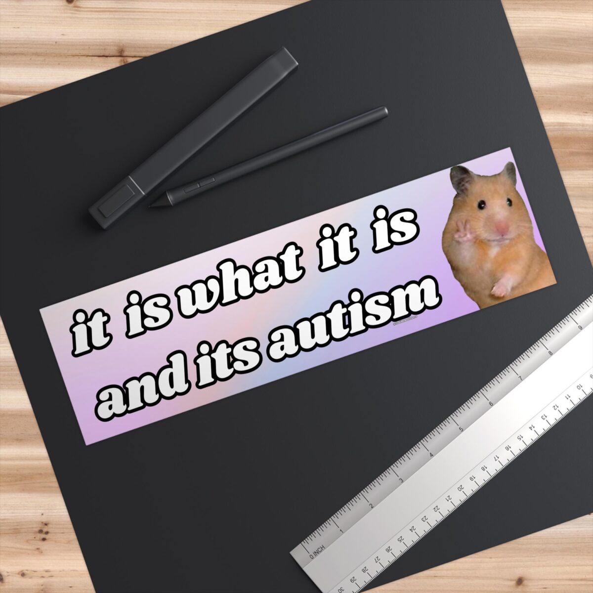 Introducing the It is What it is and its Autism | Bumper Sticker AND Magnet | Funny Meme Sticker | 8.7” X 2.7” | Waterproof Quality! This eye-catching design combines humor and personality, making it the perfect accessory for your car, laptop, or any smooth surface. With its vibrant colors and playful message, it’s sure to spark conversations and bring smiles everywhere you go.