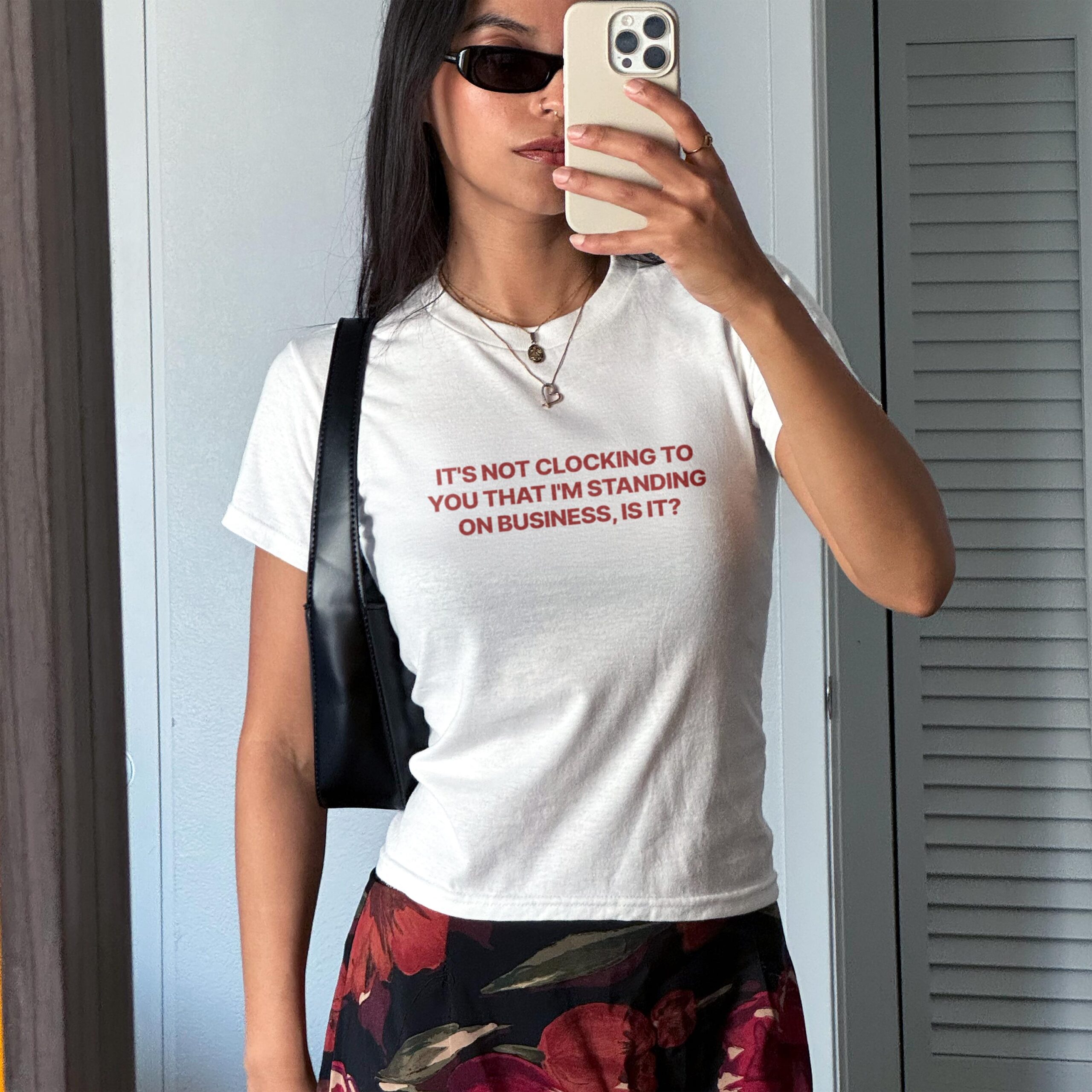 Why This It’s Not Clocking To You That I’m Standing On Business Y2K Baby Tee Is the Perfect Choice for Your Wardrobe