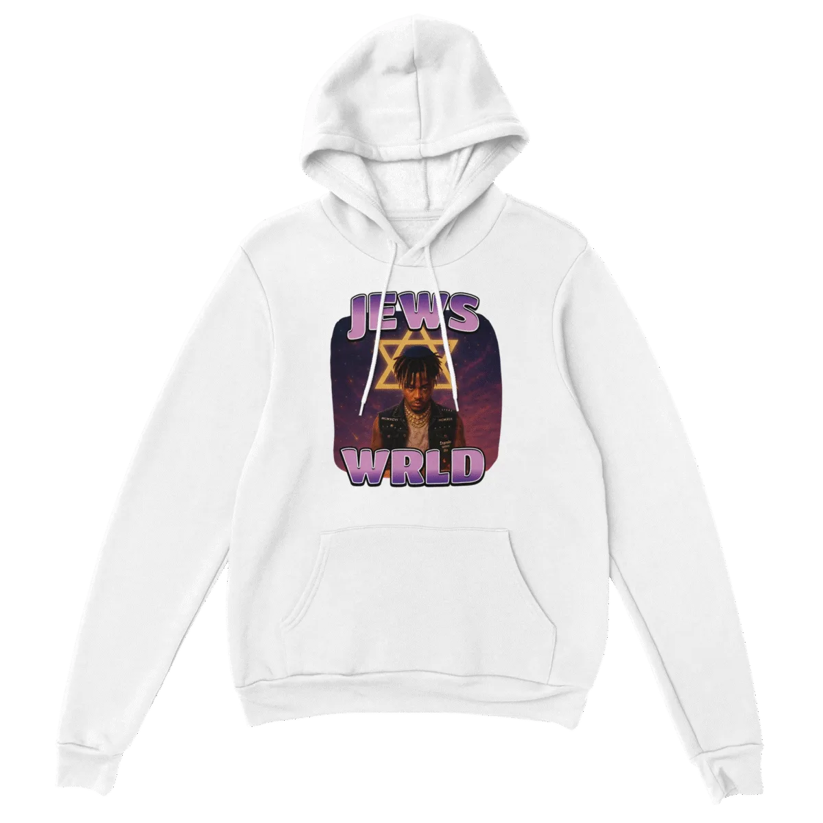 Step into style with the “Jews WRLD” hoodie! This bold and cozy piece combines comfort and flair, featuring a soft fabric blend and a unique design that stands out. Plus, the practical front pouch pocket makes it perfect for everyday wear. Whether you’re lounging at home or out with friends, this hoodie is your go-to choice for expressing individuality and staying comfortable. Make it a staple in your wardrobe today!