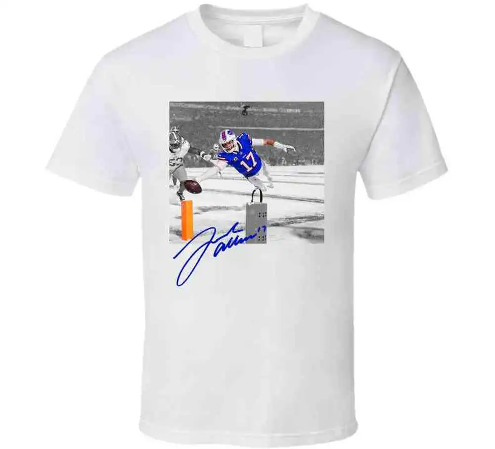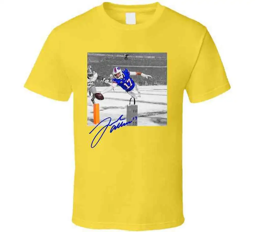 This shirt combines a classic vibe with modern flair, making it a go-to choice for any casual outing. The striking graphics pay homage to Josh Allen’s amazing plays on the field, allowing you to celebrate your fandom in style. Each print captures the energy of the game, ensuring you stand out whether you’re at a tailgate, watching a game with friends, or simply out and about.