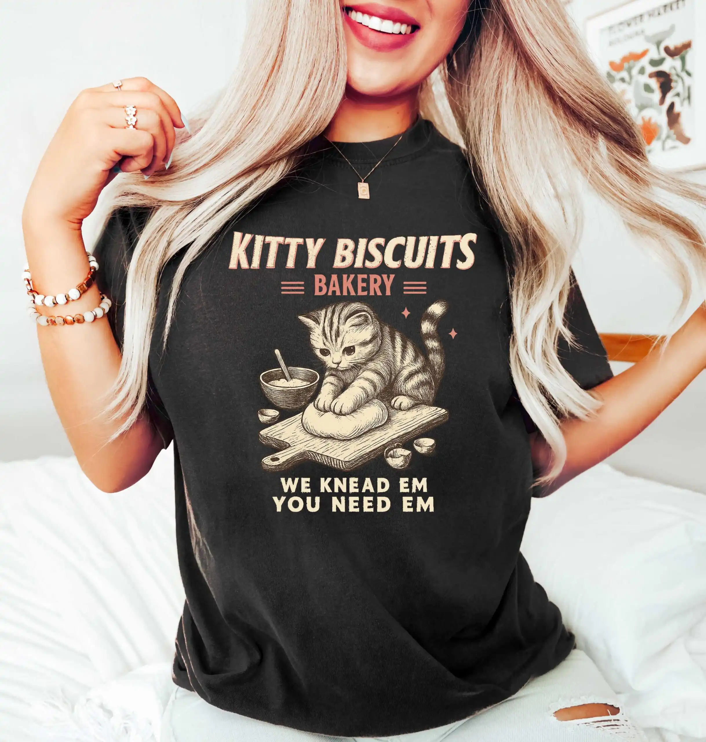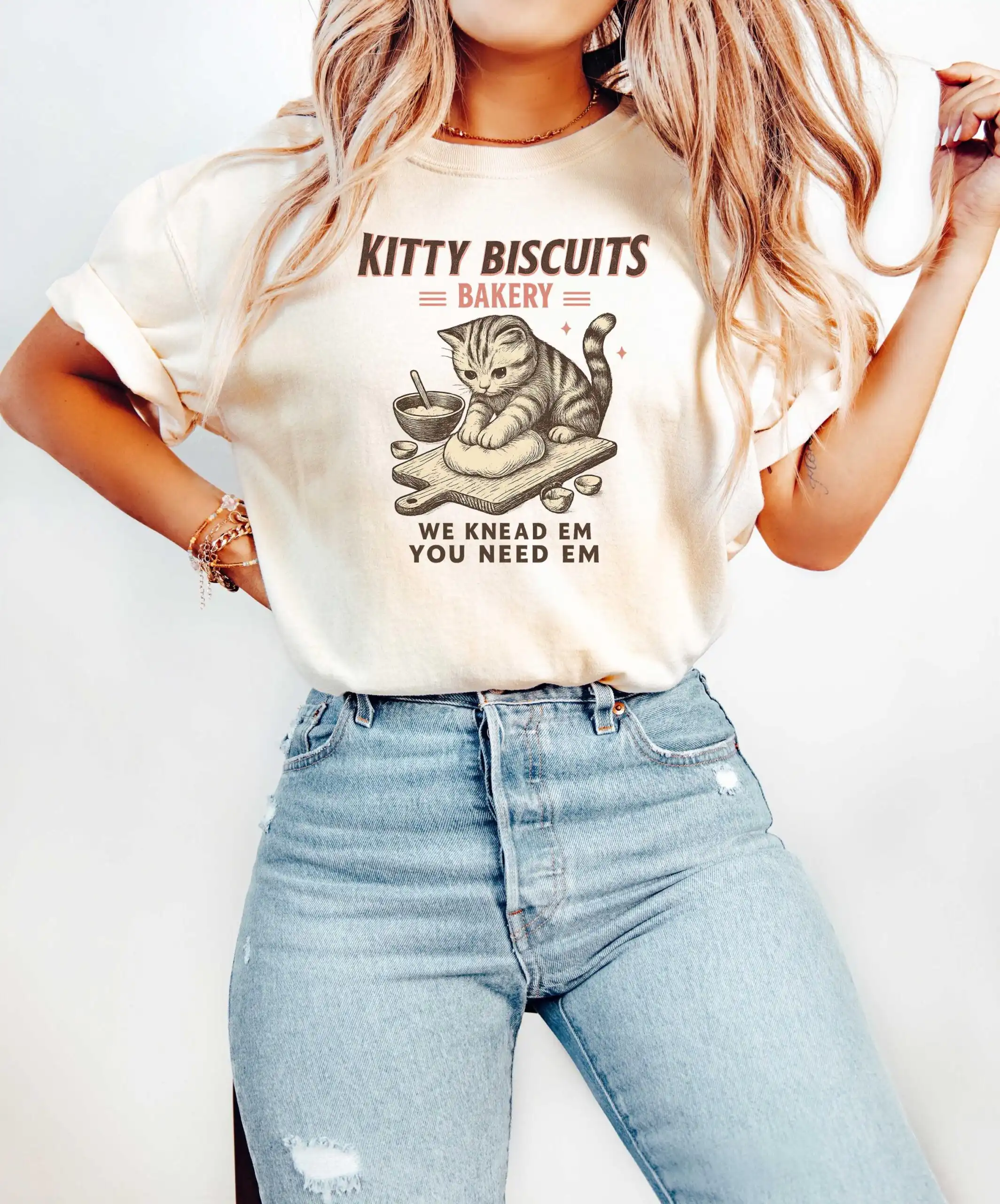 Get ready to embrace your love for cats with the Kitty Biscuits Cat T-Shirt, the perfect fusion of style and humor that every cat lover needs!