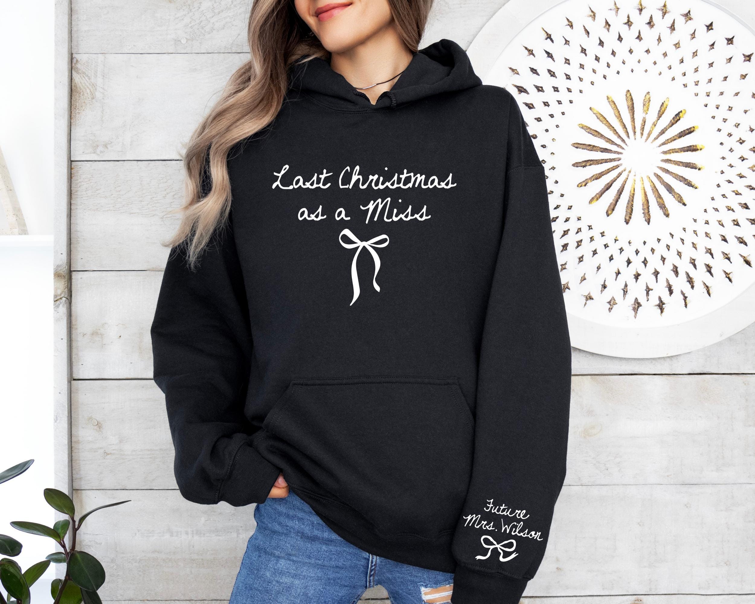 Celebrate your journey into matrimony with the Last Christmas As a Miss Sweatshirt, Custom Christmas Bride To Be Sweatshirt, Future Mrs. Hoodie, Christmas Engaged Gift, Xmas Gift For Her. This stylish and cozy sweatshirt perfectly captures the essence of your upcoming wedding while keeping you warm and fashionable during the holiday season.