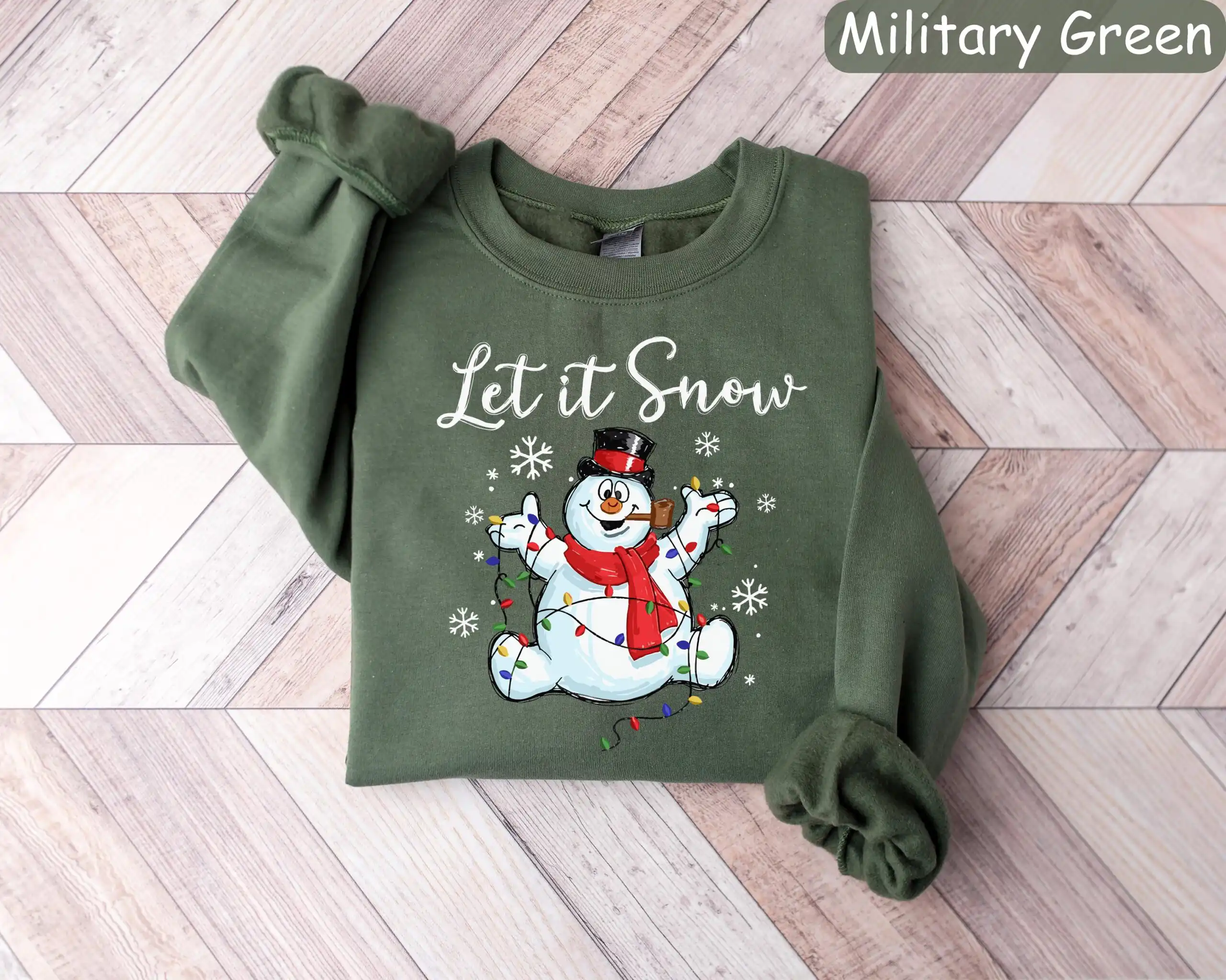 Embrace the holiday season with the Let It Snow Snowman Sweatshirt, Cute Snowman Christmas Shirt, Holiday Winter Sweatshirt, Christmas Lights Sweater, Cozy Winter Crewneck. Shine bright in this delightful design that adds cheer to your winter wardrobe!