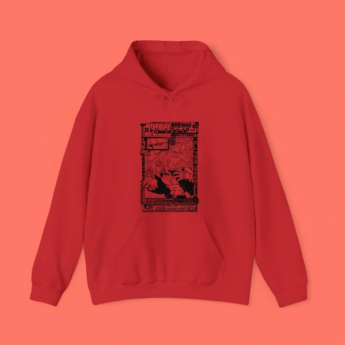 Moreover, the shirt is layered with Japanese typography and iconic phrases like “OKAY. LET’S RUMBLE!” and “YOU CAN’T ESCAPE!” This not only pays homage to the fighting game culture but also adds a bold statement to your outfit. With elements that nod to NYC’s underground scene, it’s more than just apparel; it’s a piece of street art designed to energize your look.
