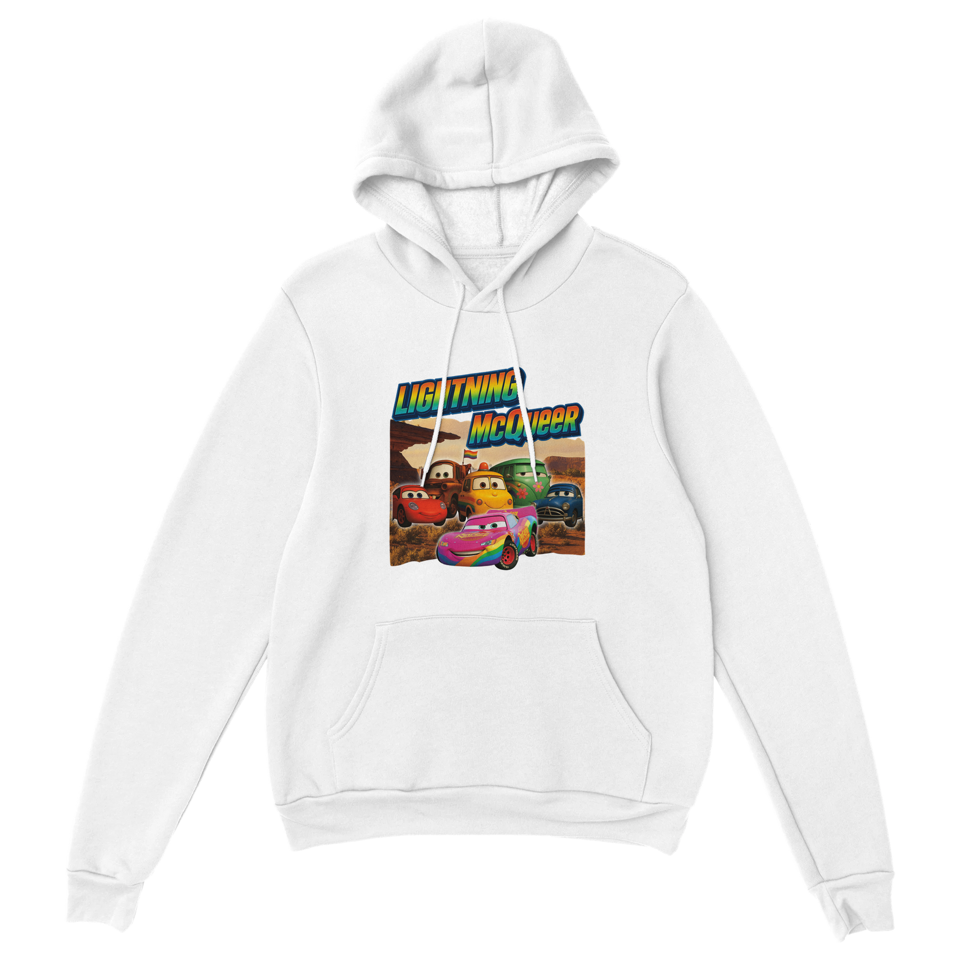 This hoodie is not just about looks; it is designed for comfort and versatility. Whether you’re heading to a casual gathering, running errands, or simply relaxing on the couch, the “Lightning McQueer” is your go-to choice. The front pouch pocket offers a cozy spot for your hands or a place to store essentials, making it ideal for all occasions.
