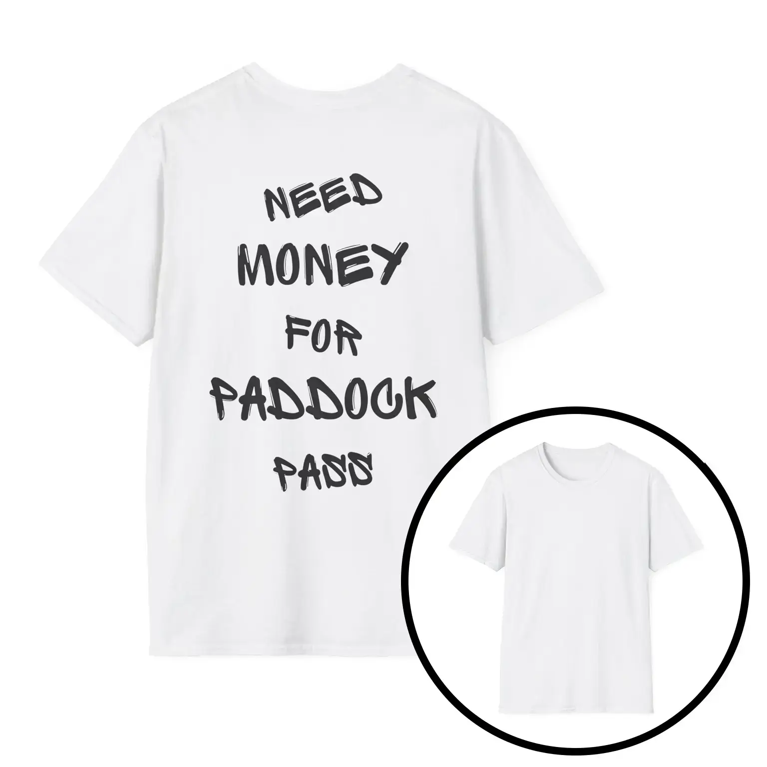 Featuring the catchy phrase “Need Money For Paddock Pass,” this shirt captures the excitement and aspiration of motorsport enthusiasts. It’s not just a shirt; it’s a statement piece that resonates with those who yearn to be closer to the action. With its modern vibe, this tee effortlessly fits into any fan’s collection.
