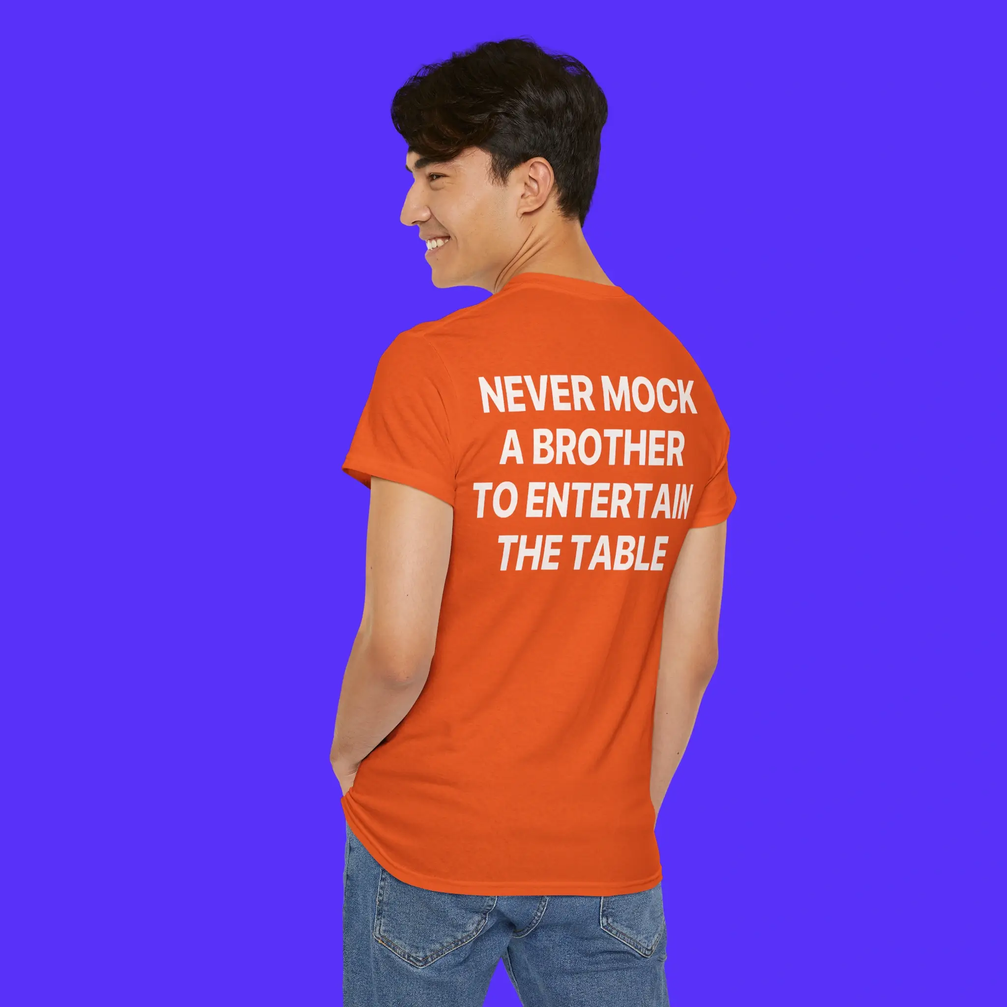 Respect, kindness, and thoughtfulness come together in the Never Mock A Brother To Entertain The Table Shirt. This shirt reminds everyone to treat others with dignity, while also making a stylish statement. Whether you are attending family gatherings or hanging out with friends, it encourages positive behavior and sparks meaningful conversations.