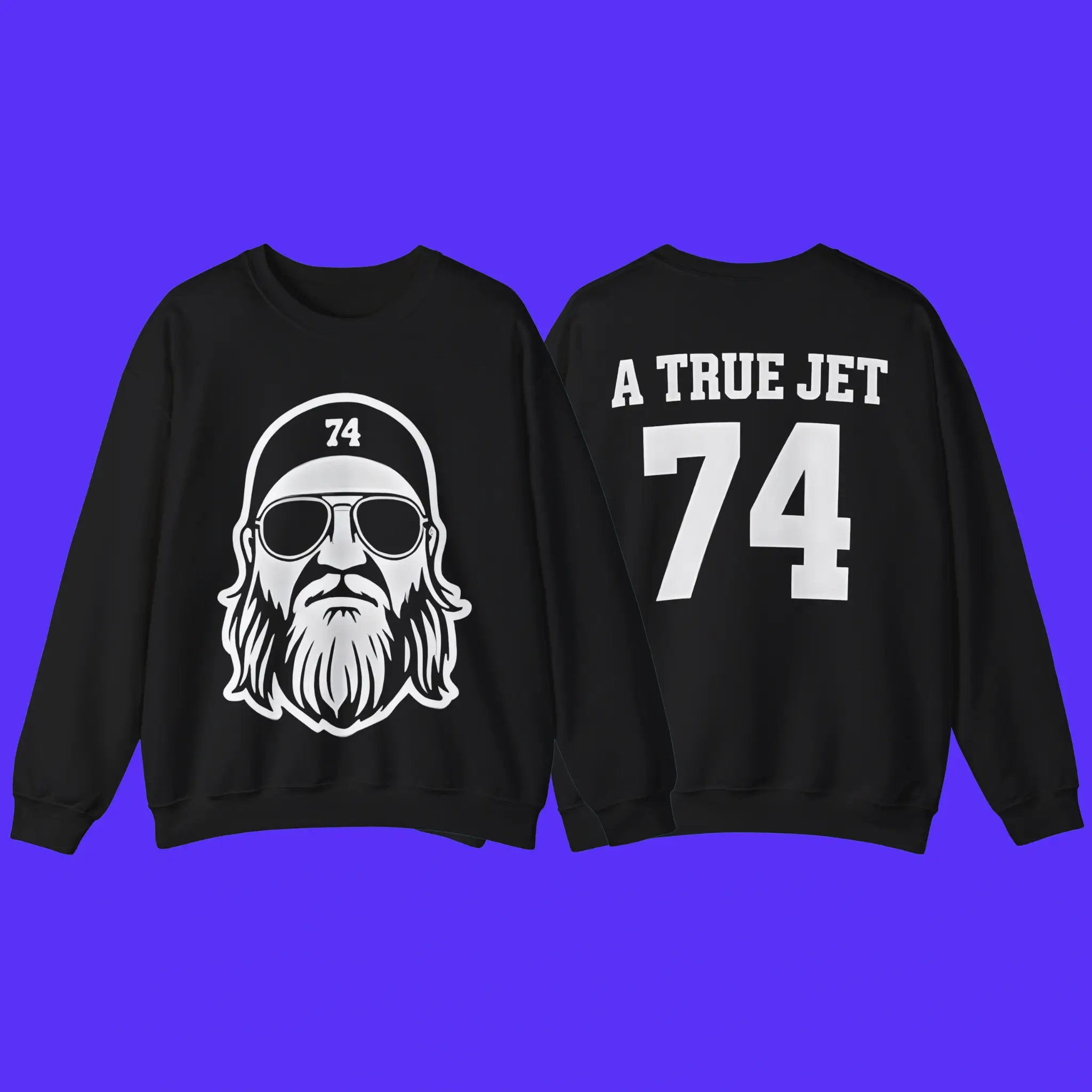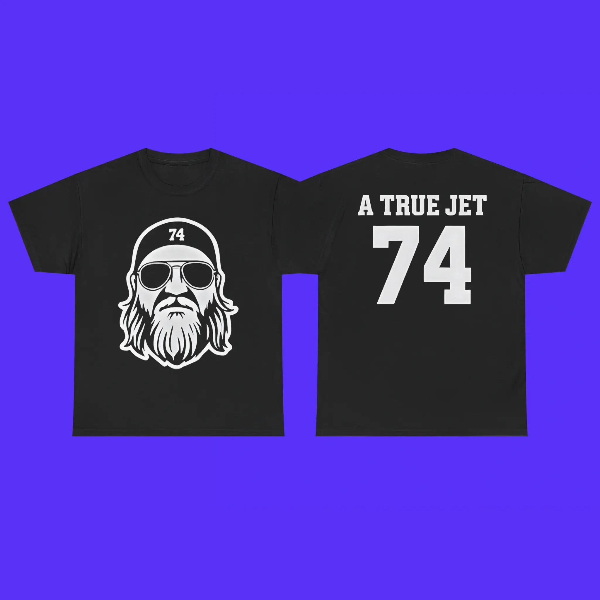The bold “A True Jet” design and number 74 highlight Mangold’s iconic role in Jets history. Also, the sharp green-and-white color palette connects you directly to the team’s spirit. This New York Jets tee pairs perfectly with jeans, shorts, or even a Jets hoodie. Therefore, you can wear it anytime, anywhere, and still look game-day ready.
