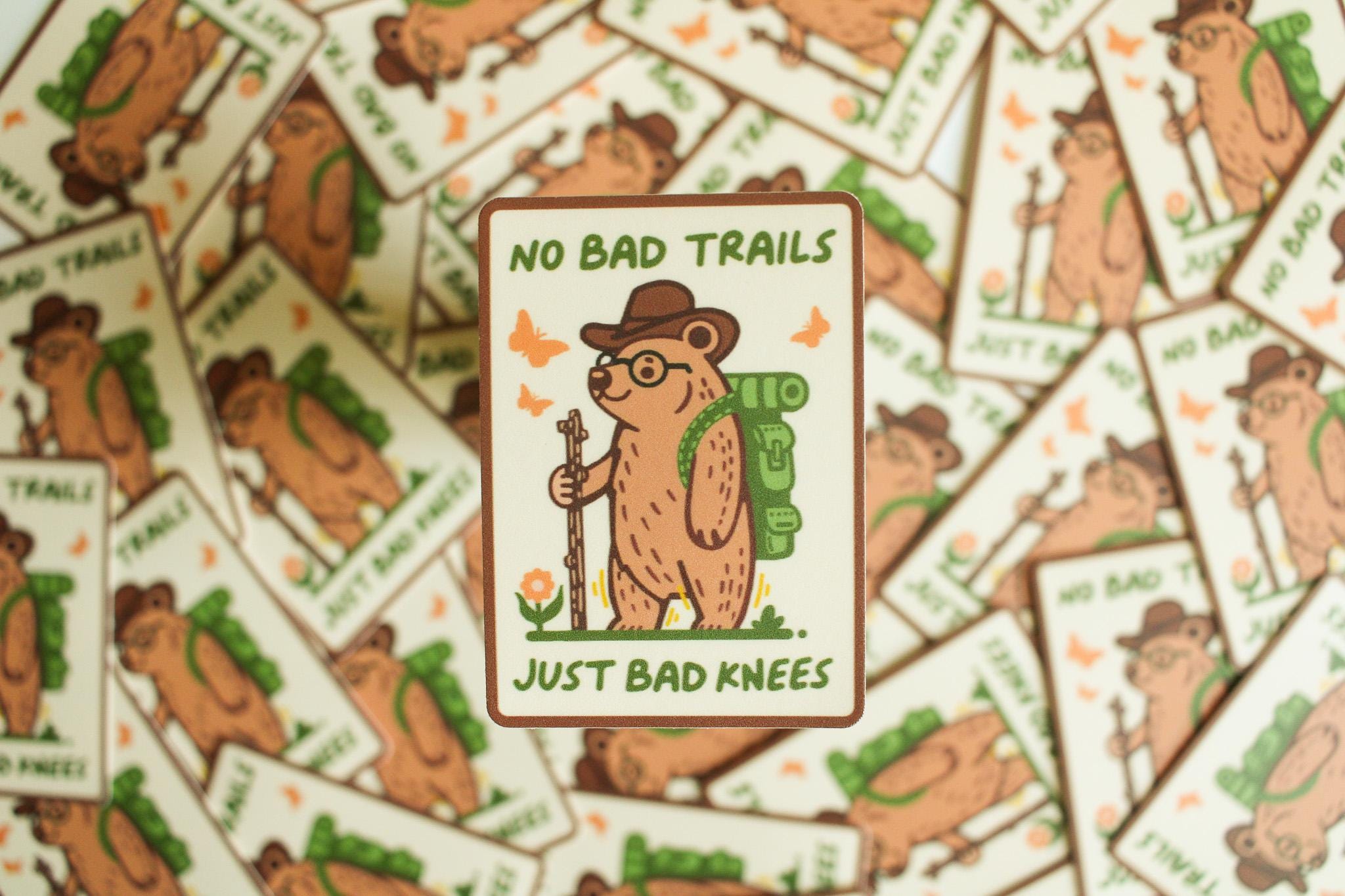 No Bad Trails, Just Bad Knees Sticker – Funny Hiking Vinyl Decal