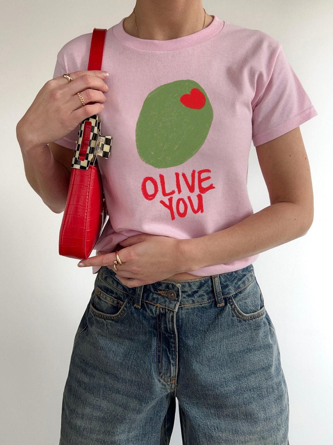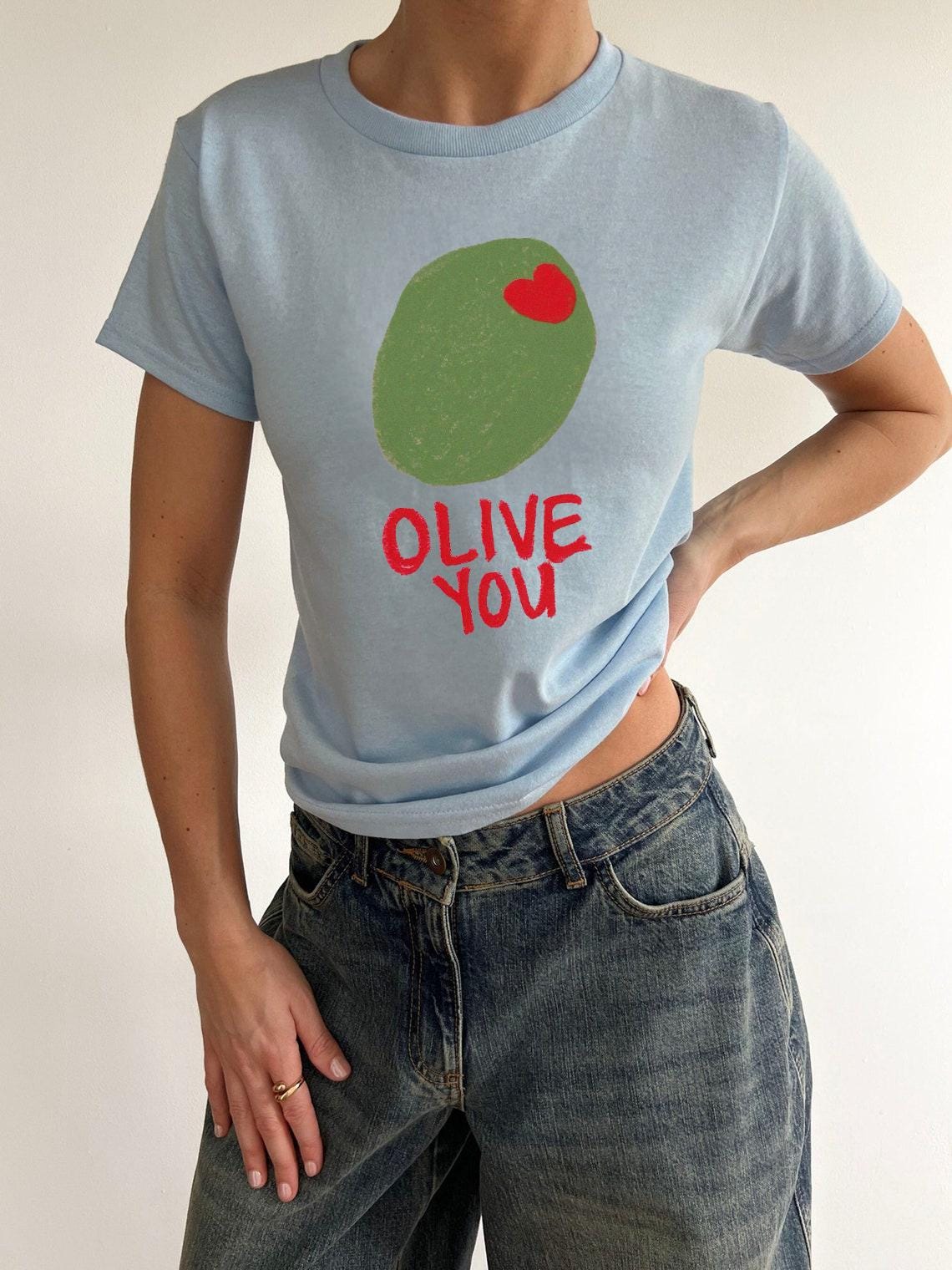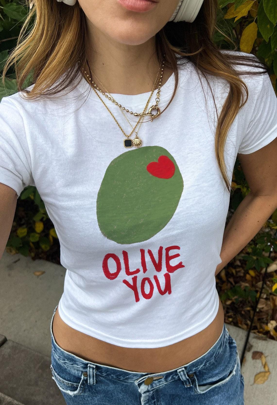 Olive You Women’s Baby Tee – Cute Green Olive Minimalist Top