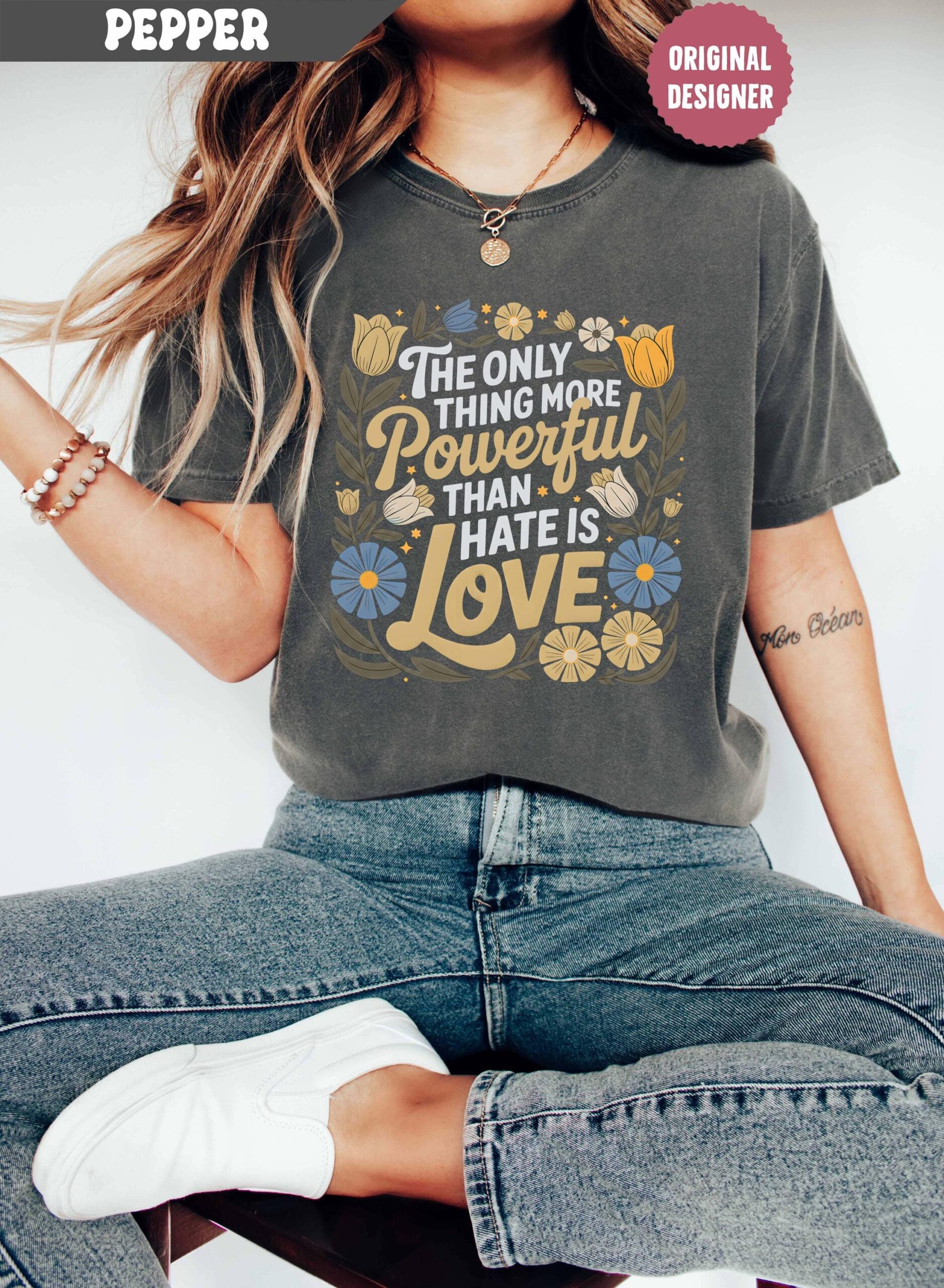 When it comes to comfort, the Comfort Colors® Only Thing More Powerful Than Hate Is Love Shirt does not disappoint. Made from 100% ring-spun cotton, it’s soft, breathable, and designed to last. You’ll love how it feels against your skin, making it an ideal choice for any casual occasion.