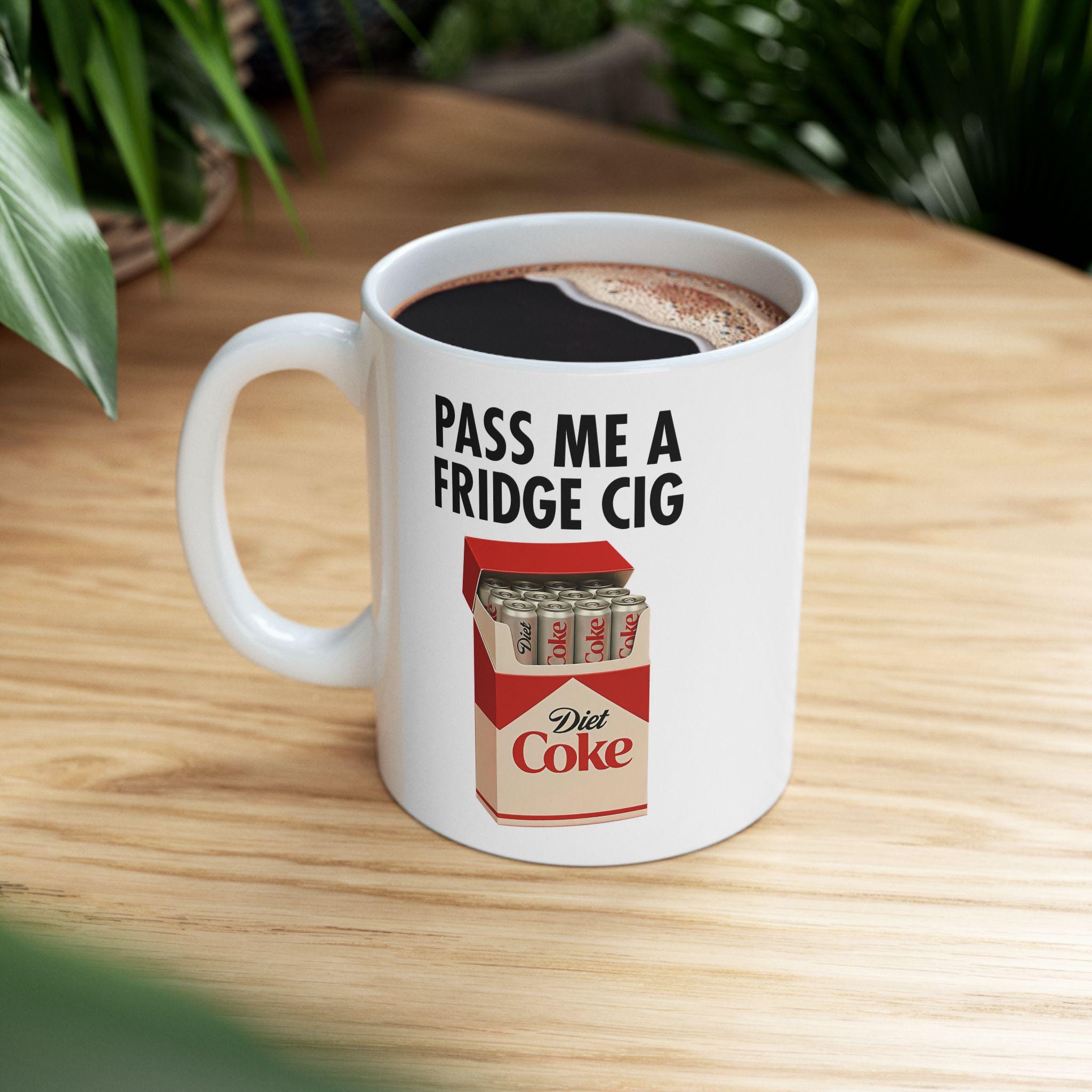 Embrace the joy of every sip with the Pass Me A Fridge Cig Diet Coke Ceramic Mug, a must-have for coffee lovers, Diet Coke enthusiasts, and anyone looking to add a bit of whimsy to their daily routine!