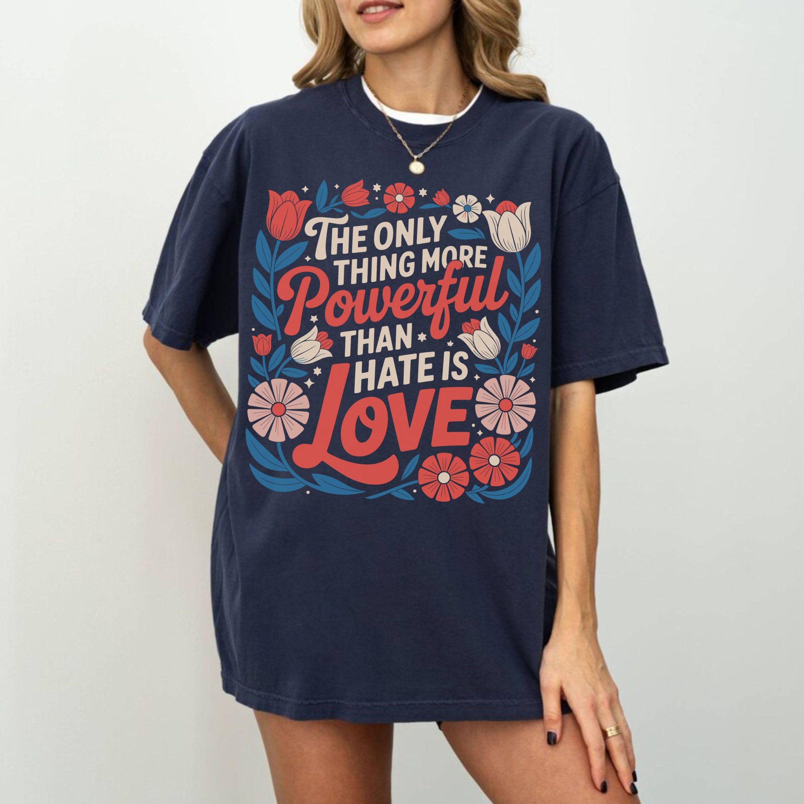 Overall, the Camiseta “Solo hay algo más poderoso que el odio: el amor”, colores cómodos, Superbowl 2026, floral con cita positiva y mensaje de bondad is not just a t-shirt; it’s a celebration of love, making it an essential piece for your collection. Embrace the message and let your style shine!