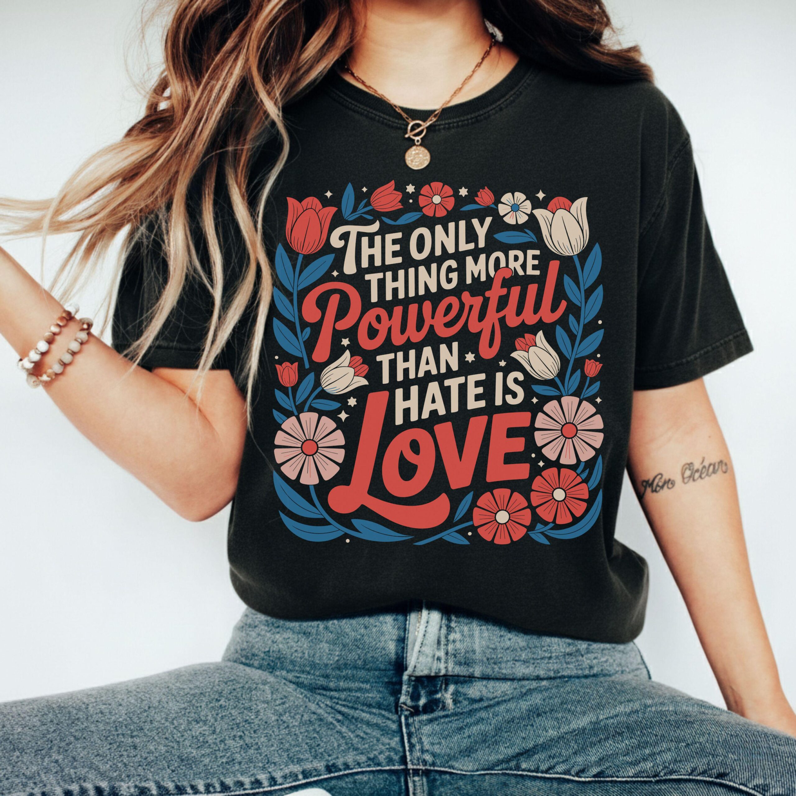 Home » Shop » Powerful Love Quote Tee – Floral Comfortable Unisex Shirt