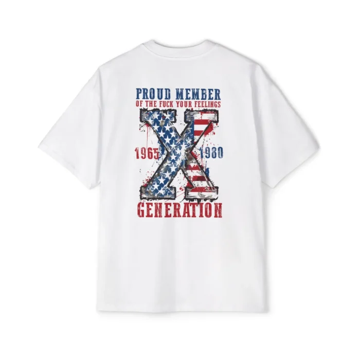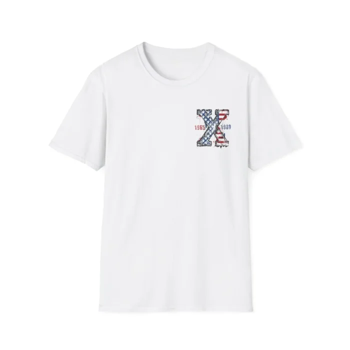 The design of this shirt is nothing short of striking. Featuring the years “1965” and “1980” encircling a large “X,” set against the backdrop of the American flag, it pays homage to the unique identity of the X Generation. This shirt captures the essence of a generation that refuses to conform, making it a must-have for anyone who values individuality.