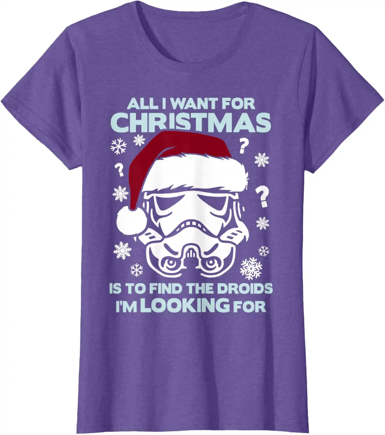 Embrace the holiday spirit with the Star Wars Storm Trooper Droid Looking Christmas T-Shirt T-Shirt! This officially licensed tee combines the fun of Christmas with the iconic universe of Star Wars, making it a must-have for fans and festive occasions alike.