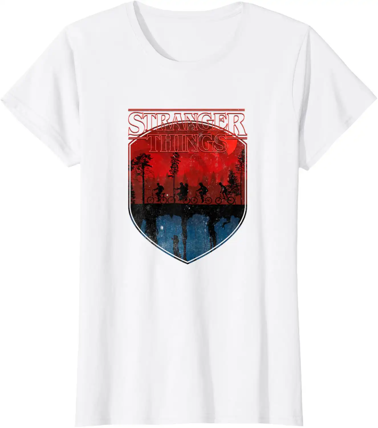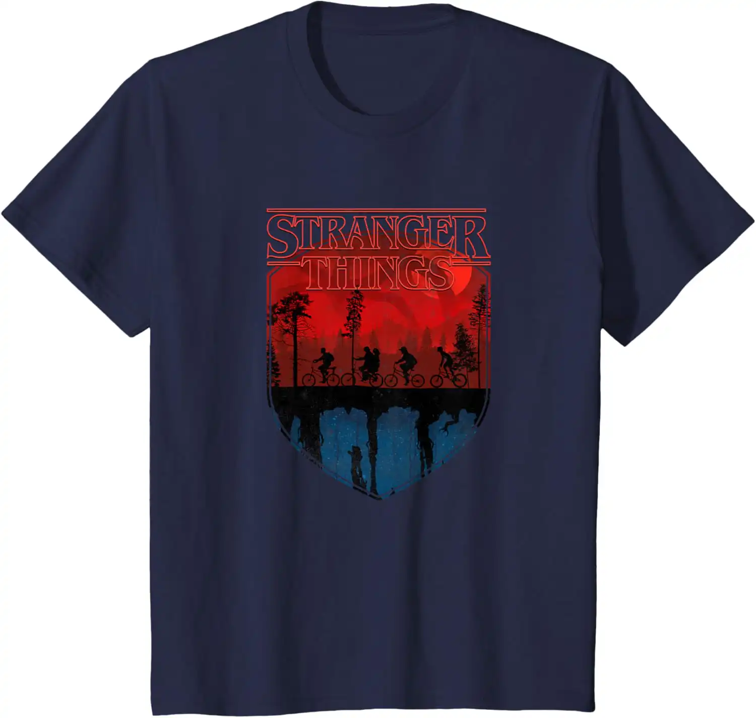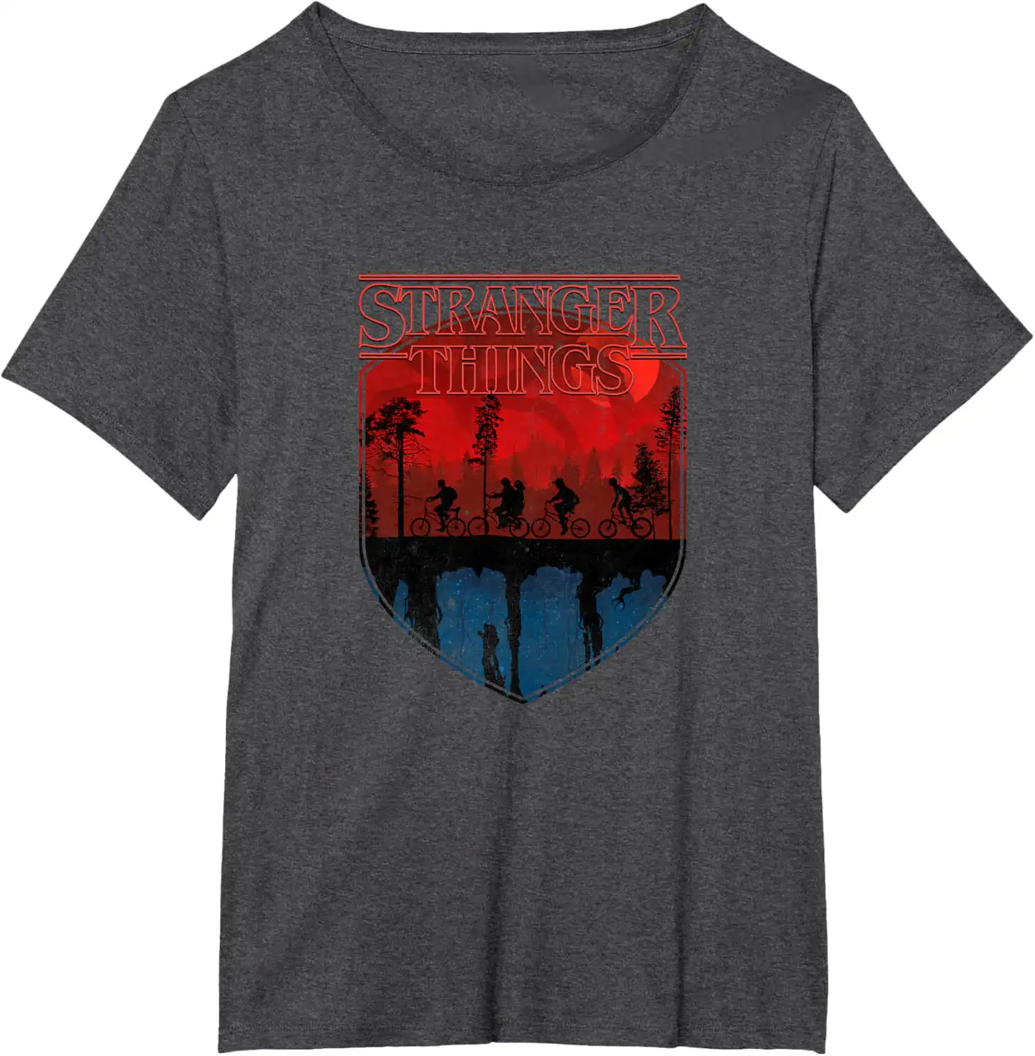 Why This Stranger Things Group Shot Mindflayer Trail Silhouettes T-Shirt Is the Perfect Choice for Your Wardrobe