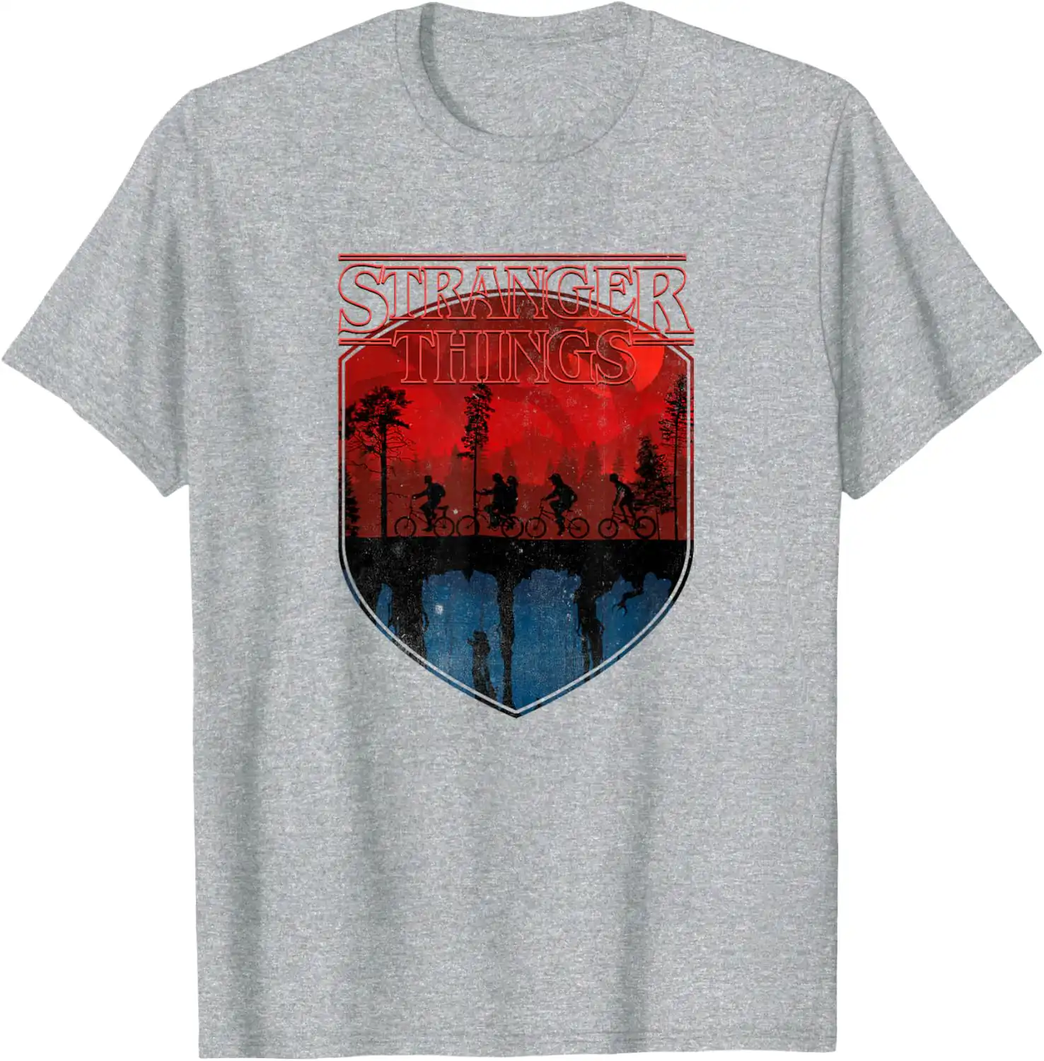 In summary, the Stranger Things Group Shot Mindflayer Trail Silhouettes T-Shirt is a bold expression of fandom, offering both style and comfort. Add this tee to your collection and celebrate the thrill of the Upside Down!