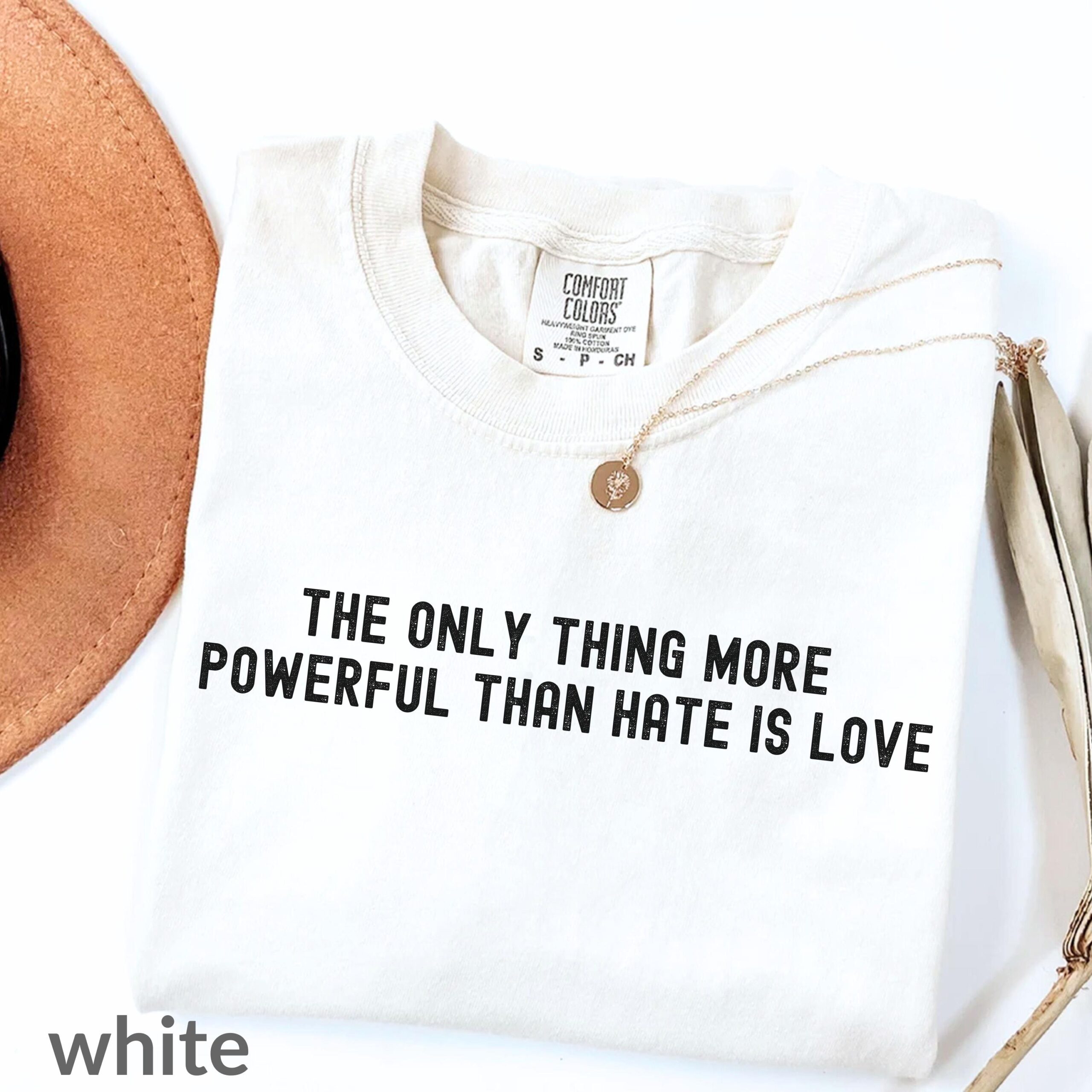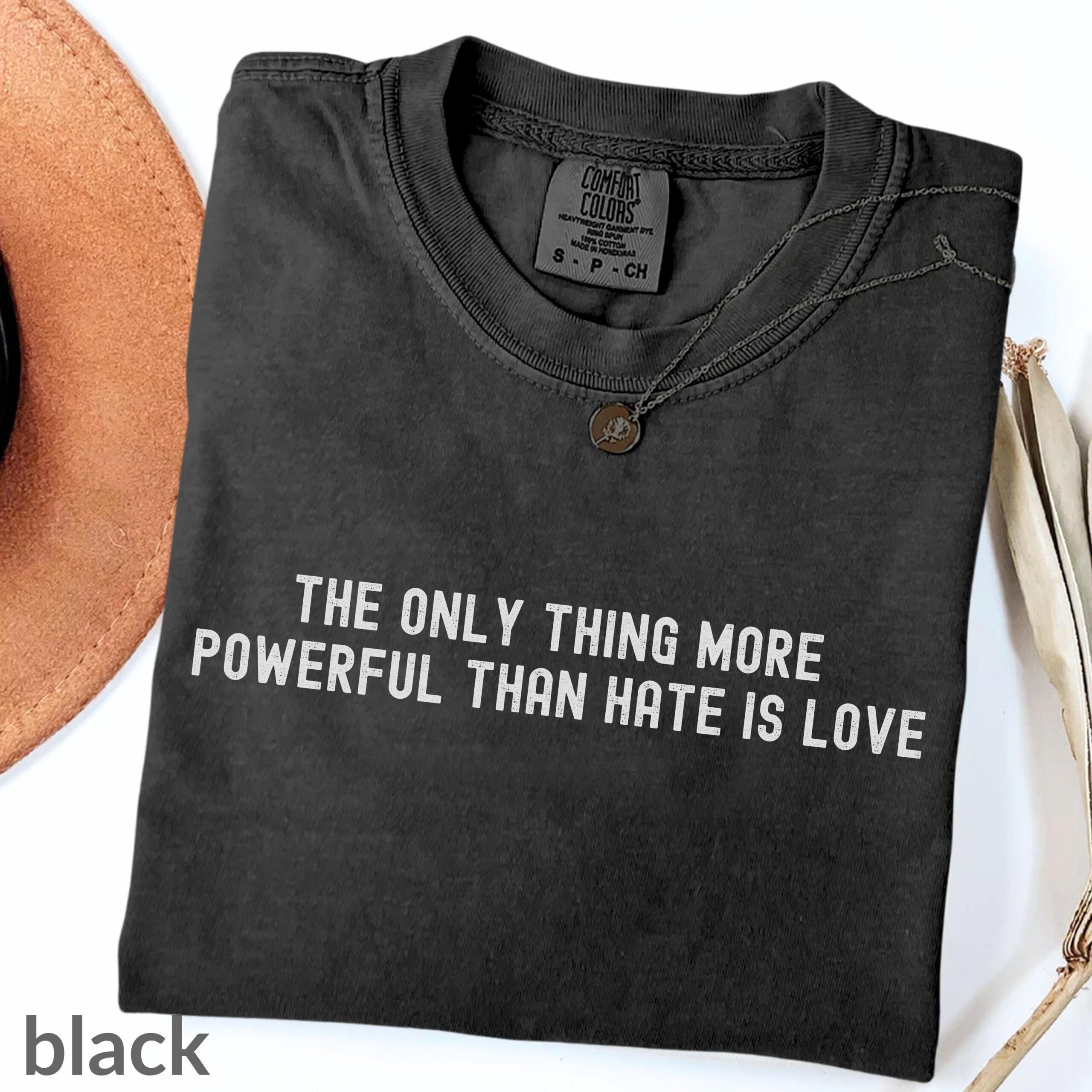 Introducing the Only Thing More Powerful Than Hate is Love Shirt, Comfort Colors®. This stylish tee not only makes a bold statement but also wraps you in comfort and positivity. Perfect for anyone who believes in the strength of love over hate, this shirt is a must-have addition to your wardrobe.
