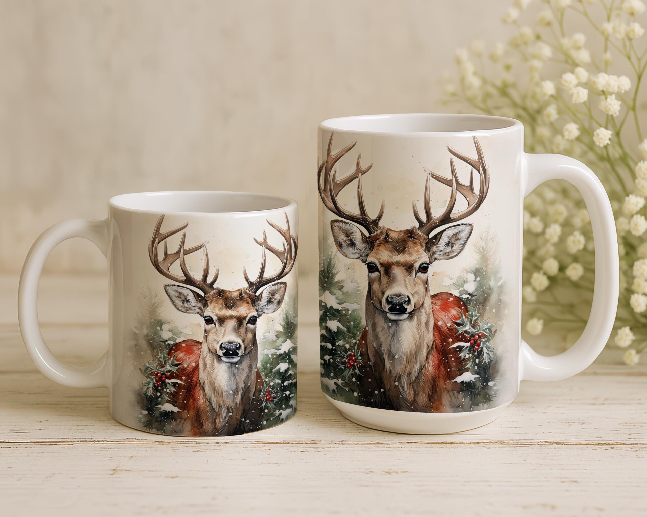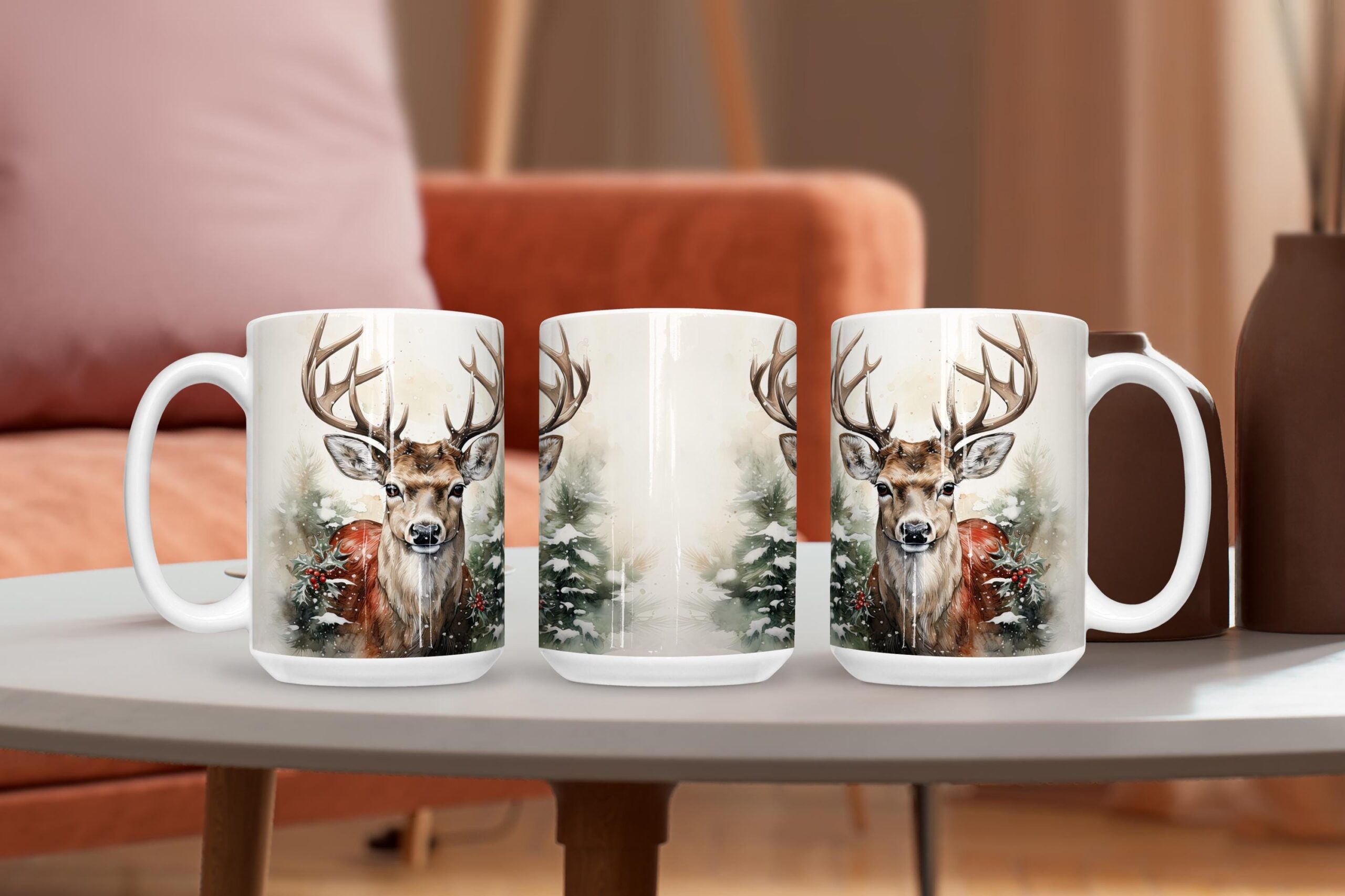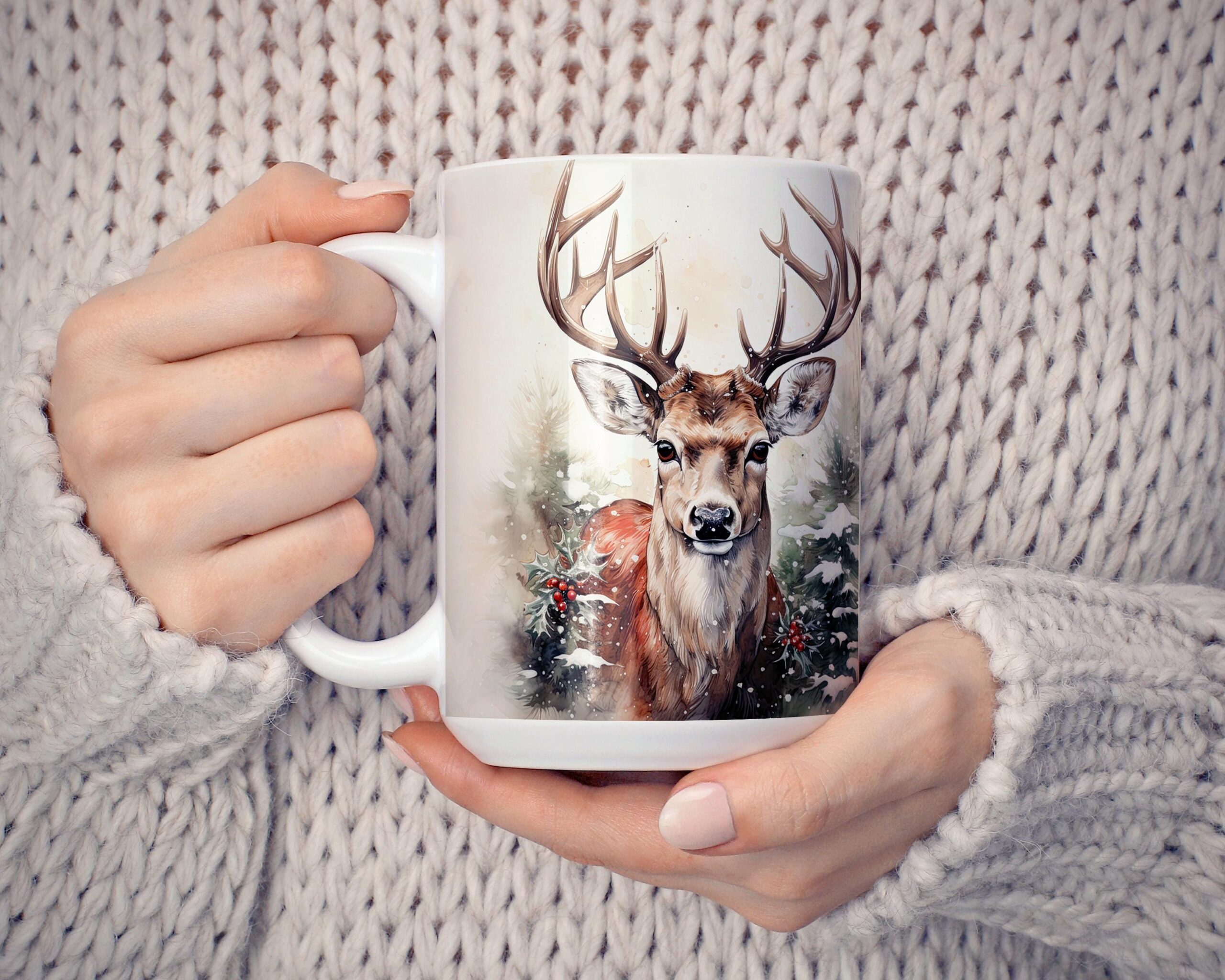 Winter Deer Christmas Mug – Watercolor Reindeer Holiday Cup