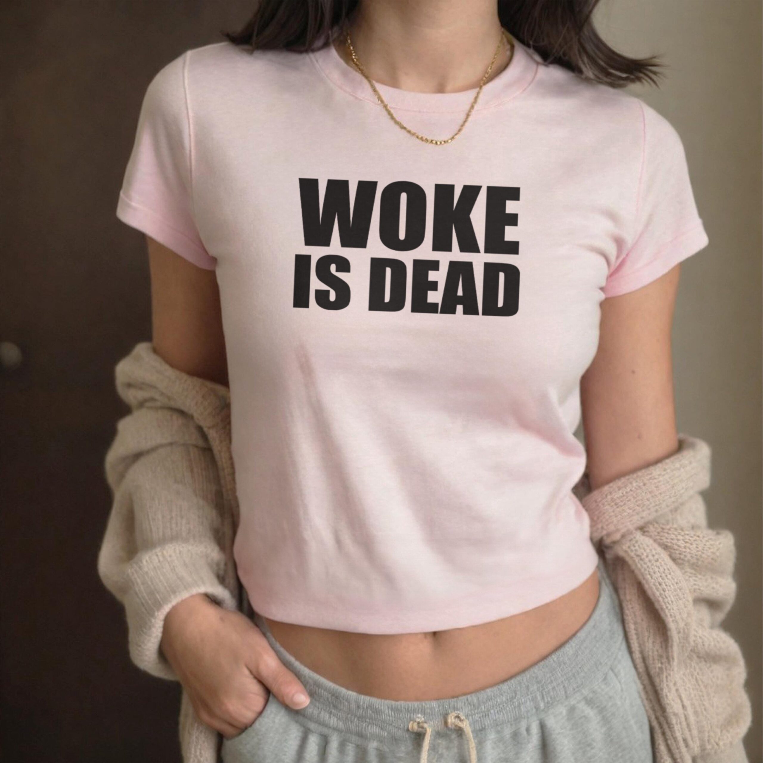Woke Is Dead Baby Tee – Y2K Edgy Graphic Shirt for Women